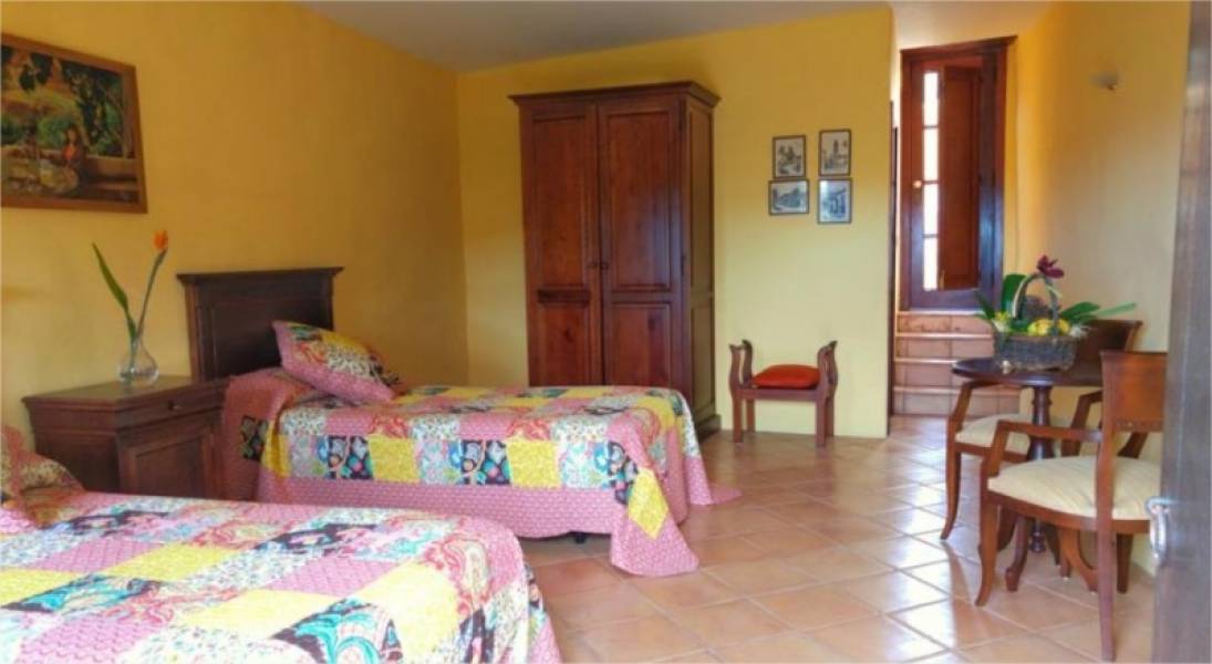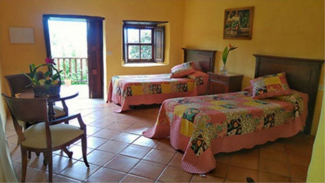 Finca la Raya, en la zona noreste de Tenerife, situada en el Camino la Raya es un inmueble con numerosas aportaciones tipológicas. Construida sobre cuevas naturales es el núcleo edificado más antiguo del lugar. Elevada sobre un promontorio rocoso, más escarpado en el lado de poniente ya que se encuentra como colgada sobre un barranquillo en el que observamos las cuevas volcánicas que dan vista a dragos centenarios.. . En la fachada de la casa, podemos acceder por medio de una escalera adosada a un estanque que ocupa la superficie del patio. En la fachada norte, se abre una gran puerta que permite la comunicación directa de la casa con el Camino La Raya.. . La planta alta, consta de una serie de salas y dormitorios. En la parte posterior y sobre los riscos del barranquillo, encontramos una amplia cocina. Además existe un acceso a una tercera planta con dos habitaciones y acceso a la azotea.. . A partir de la casa, encontramos varias construcciones secundarias, como son las caballerizas, la capilla al aire libre, la estufa de la cochinilla y el horno de pan. Todas estas construcciones dan a un caminito empedrado que separa la zona edificada del antiguo parque.. . Por otra parte la finca incluye 4 terrenos urbanos, en total son 1150 m2 donde se pueden construir 4 viviendas de 200 m2 cada una y en dos plantas por lo que otorga un valor potencial a la finca en caso de inversión para ampliar el número de habitaciones o construir anexos al hotel como ser solarium, habitaciones para el personal, etc. Además la propiedad cuenta con 2 acciones de agua para riego de la finca. El precio es de 1.600.000 euros incluidos los terrenos urbanos lo que hacen de la finca un total de casi 4.000 m2. Los impuestos, gastos de escritura y de registro no están incluidos en el precio..