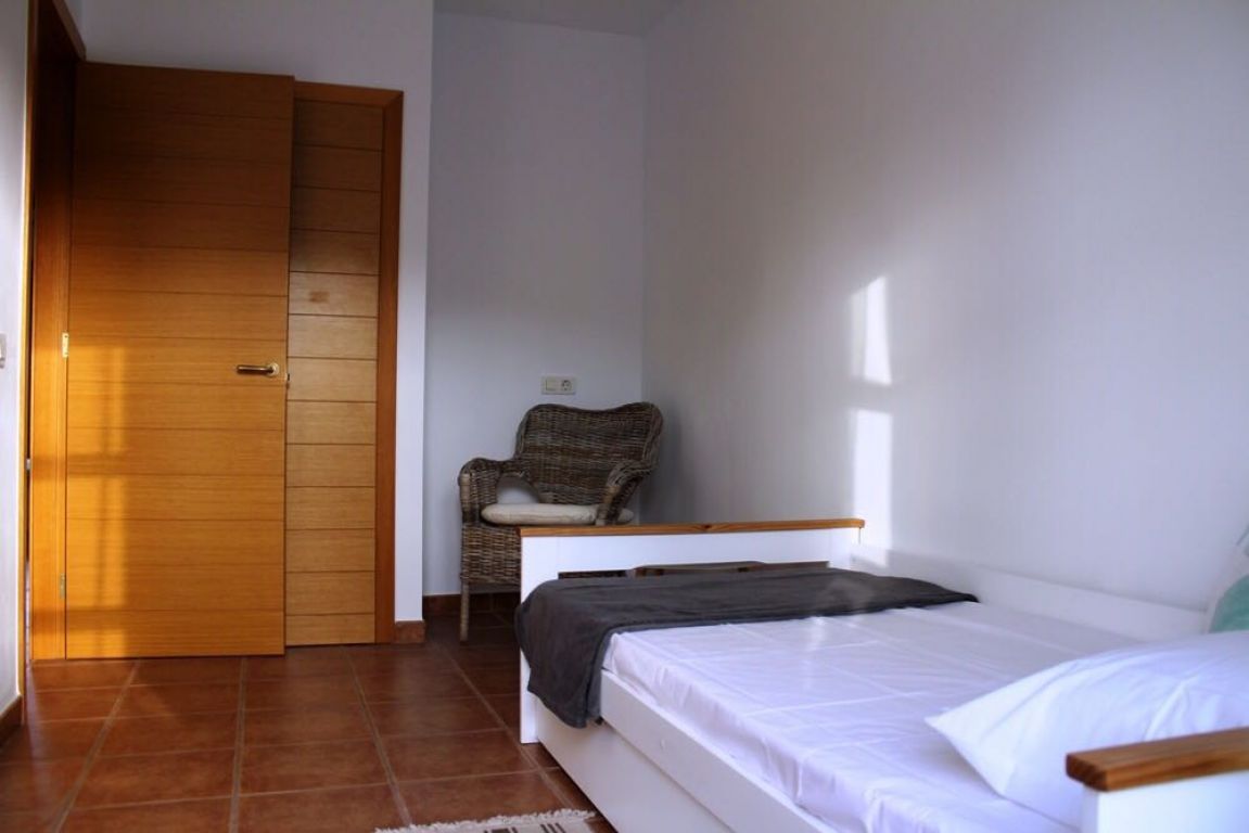 En venta precioso adosado en urbanización residencial de San Blas, la vivienda dispone de 128 m2 más 80 m2 de terraza y jardín. La vivienda se distribuye en 2 plantas, la 1era. cocina amueblada y equipada, 1 aseo, 1 trastero en bajo escalera y 1 amplio salón comedor con salida a hermosa terraza con barbacoa y jardín, vistas parciales al mar. En la 2da. planta 3 dormitorios, uno de ellos con baño en suite con jacuzzi, otro baño grande completo, 2 de las habitaciones con balcón y vistas parciales al mar. En subsuelo garaje privado y cerrado para dos coches. A 5 minutos del mar y por si fuera poco totalmente amueblado. Pisos de parquet en la casa. Playa a unos 200 metros. Complejo muy tranquilo con 2 piscinas comunitarias.. . Precio de venta 367.000 euros (impuestos, gastos notariales y de registro no incluidos en el precio).