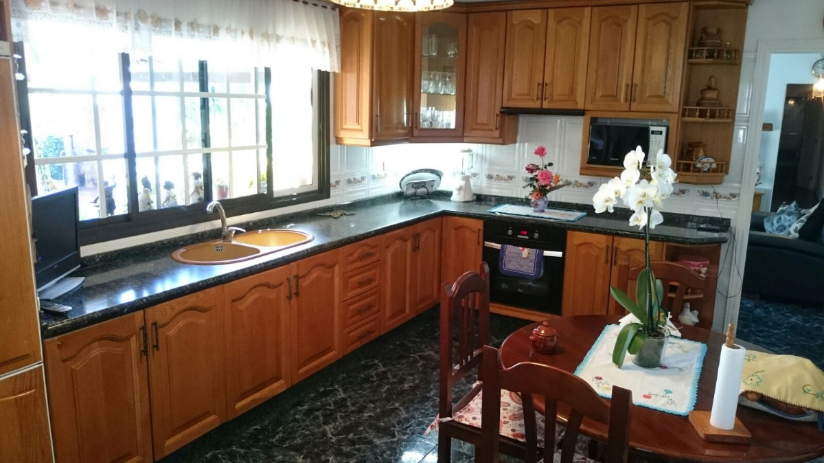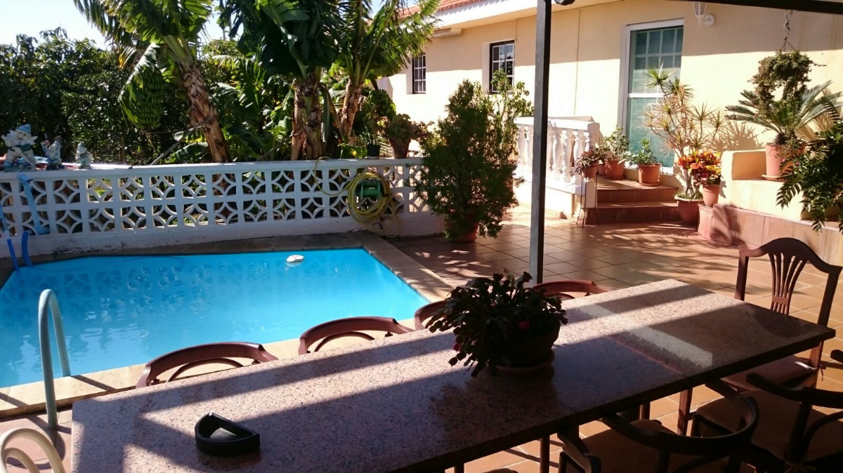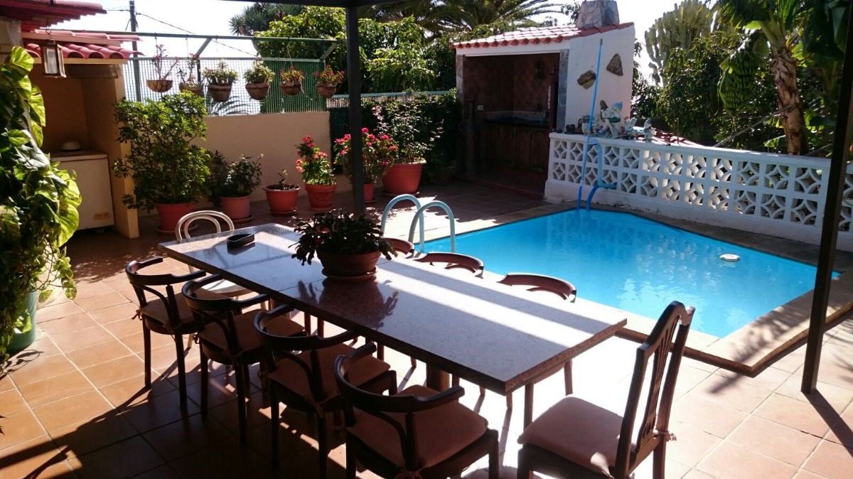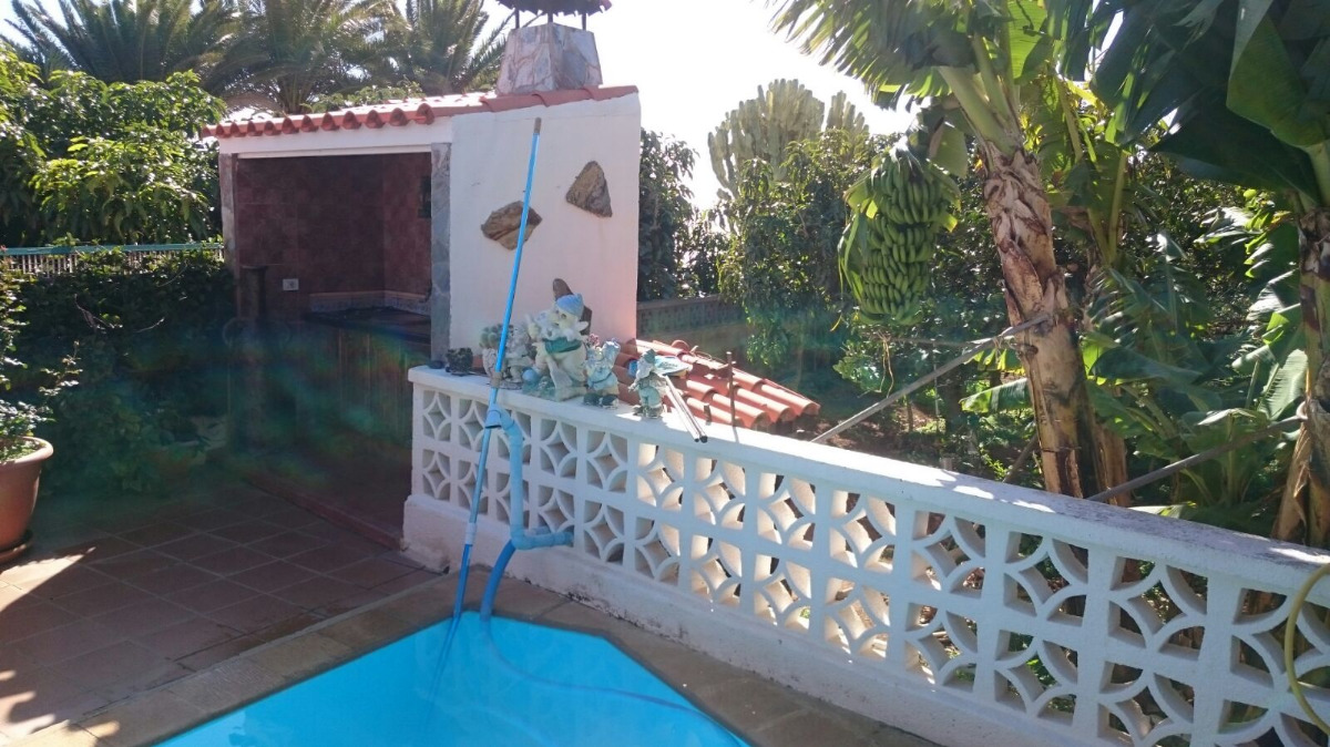 Se vende espectacular chalet en barranco Hondo. Con una superficie construida de 140 m2 sobre una parcela de 725 m2. Construida en una sola planta, permite ampliar la edificación o una segunda vivienda. La casa consta de 3 habitaciones con armarios empotrados, salón comedor amplio, otro salón de TV, cocina independiente, 2 baños completos, garaje para 2 coches, zona de barbacoa y piscina. Terraza cubierta de unos 40 m2, lavadero y trastero. Excelentes vistas, rodeada de amplios jardines y árboles frutales. Huerto ecológico en pleno rendimiento. Tranquila zona residencial y excelente clima, a tan solo 2 minutos de la autopista sur.. . Precio de venta: 340.000 euros (impuestos, gastos notariales y de registro no incluidos en el precio).