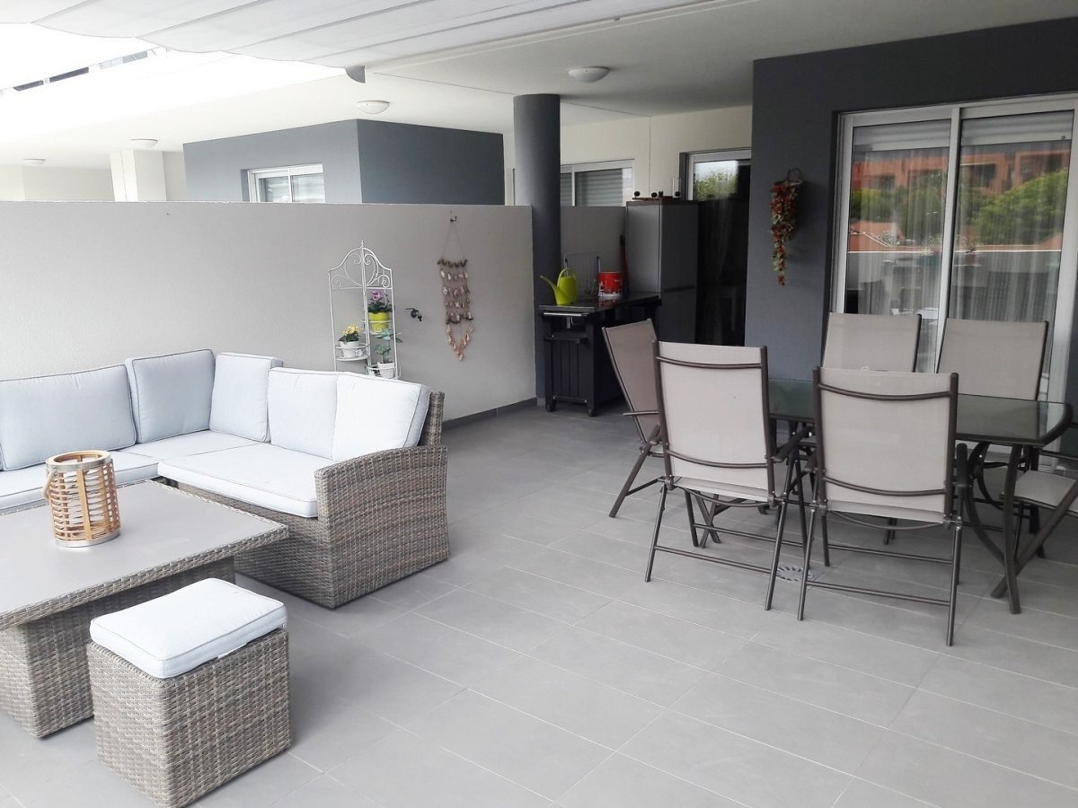 SE VENDE EN SOTAVENTO:. Apartamento de 1 dormitorio + vestidor y salón-cocina americana, cuarto lavadero, con gran terraza en nuevo complejo Las Terrazas, garaje incluido. 63 m2 de apartamento + 49 m2 de terraza. El complejo tiene paneles solares que calientan el agua en el apartamento, piscina semi-climatizada, cancha de padel, comunidad 53 euros, IBIU 220 euros al año. Precio 232.000 euros, con 2.5% de comisión vuestra incluidos. Se podrá escriturarlo a partir de diciembre de este año.. . Precio de venta: 232.000 euros (impuestos, gastos notariales y de registro no incluidos en el precio)..