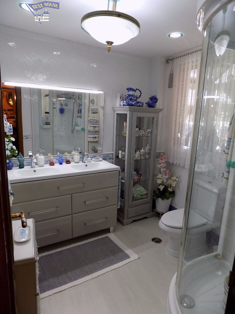Adosado singular en Monasterio, Arroyo de la Encomienda, al lado del Hotel AC. Las calidades son inmejorables: climalit en todas las ventanas, parquet de alta calidad, puertas de madera con cristalería, aire acondicionado en las tres habitaciones de la primera planta, terraza cubierta. El porche de entrada es acristalado, con armarios y tiene 7m2. Tenemos una habitación en la planta baja, de 10m2, baño completo con columna de hidromasaje, cocina totalmente equipada, con puertas de madera, de 9m2, con ventana a la calle, amplio salón de 21m2, con salida a la terraza cubierta. Del salón accedemos a la bodega de 40m2, perfectamente acondicionada. En la primera planta tenemos tres habitaciones con AA, de 13, 12 y 12m2, todas con salida a la terraza exterior, con vistas despejadas. Tenemos también un baño completo con bañera. Garaje para un coche, perfectamente acondicionado, con armarios. Una casa de lujo en una de las mejores zonas de Arroyo de la Encomienda, a un paso de Hipercor.