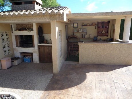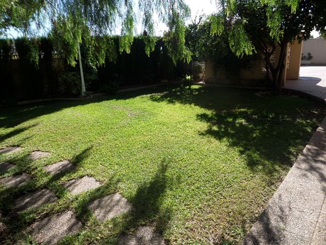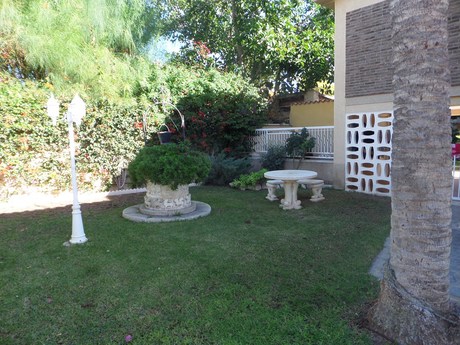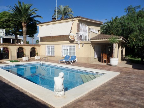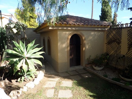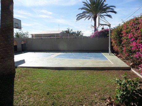 Magnifico independiente chalet con calidades de lujo en dos plantas:. 1º planta: Gran Salón de 45m2, 1 dormitorio doble, baño completo y cocina amueblada. Aire acondicionado individual en salón y dormitorio. Suelo en Gres. Persianas Eléctricas......... . . 2º planta: Salón de 25m2, despacho, 4 dormitorios dobles, una habitación vestidor, balcón-mirador, 2 baños (uno en suite), suelo de parque, ventanas doble basculante.. . . Exteriores: Mini pista baloncesto, piscina con bar y barbacoa, zonas ajardinadas, arboles frutales y centenarios, caseta trastero/servicio, gimnasio, caseta instalación de propano. caseta de perros y garaje. . . . Todo ello en una magnifica ubicación y a un paso del mar y del Carrefour.