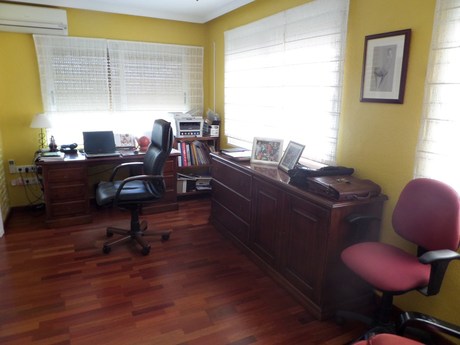 Magnifico independiente chalet con calidades de lujo en dos plantas:. 1º planta: Gran Salón de 45m2, 1 dormitorio doble, baño completo y cocina amueblada. Aire acondicionado individual en salón y dormitorio. Suelo en Gres. Persianas Eléctricas......... . . 2º planta: Salón de 25m2, despacho, 4 dormitorios dobles, una habitación vestidor, balcón-mirador, 2 baños (uno en suite), suelo de parque, ventanas doble basculante.. . . Exteriores: Mini pista baloncesto, piscina con bar y barbacoa, zonas ajardinadas, arboles frutales y centenarios, caseta trastero/servicio, gimnasio, caseta in... Leer más