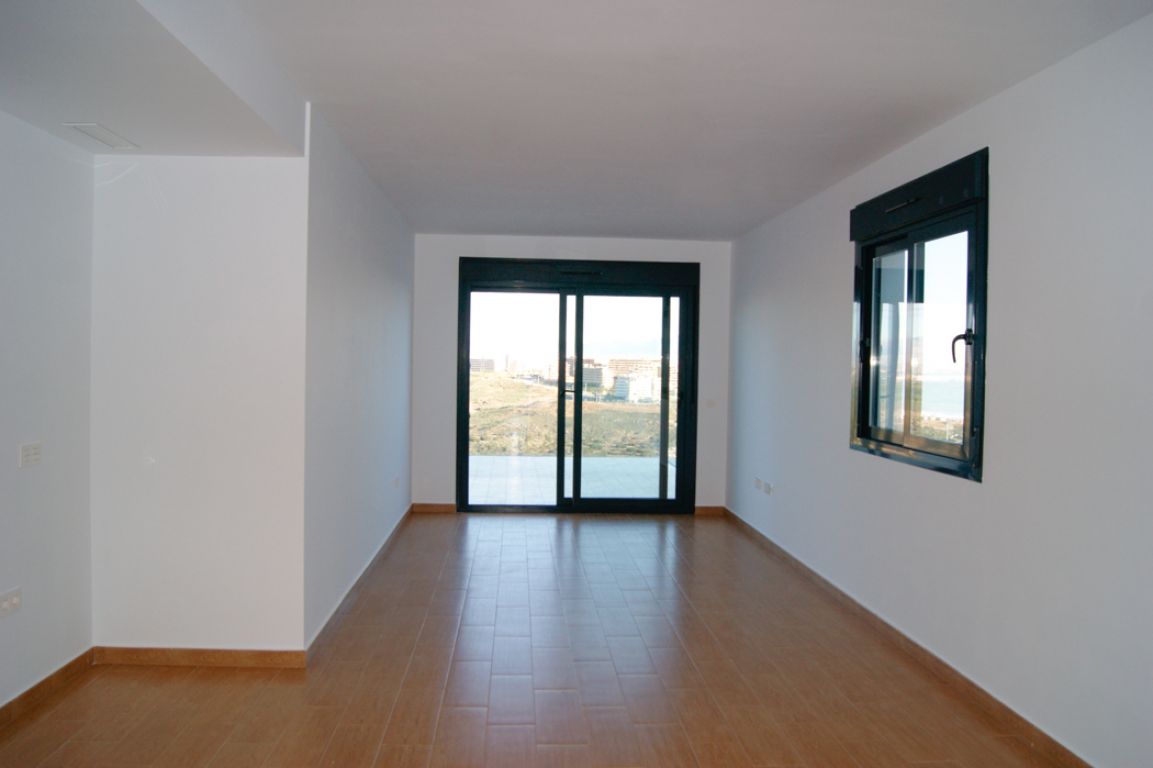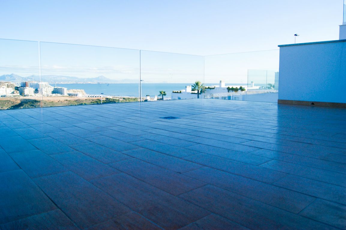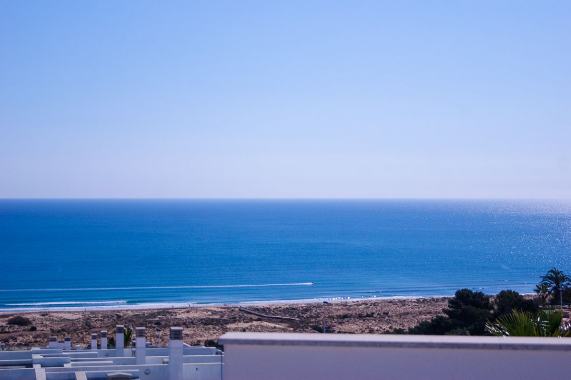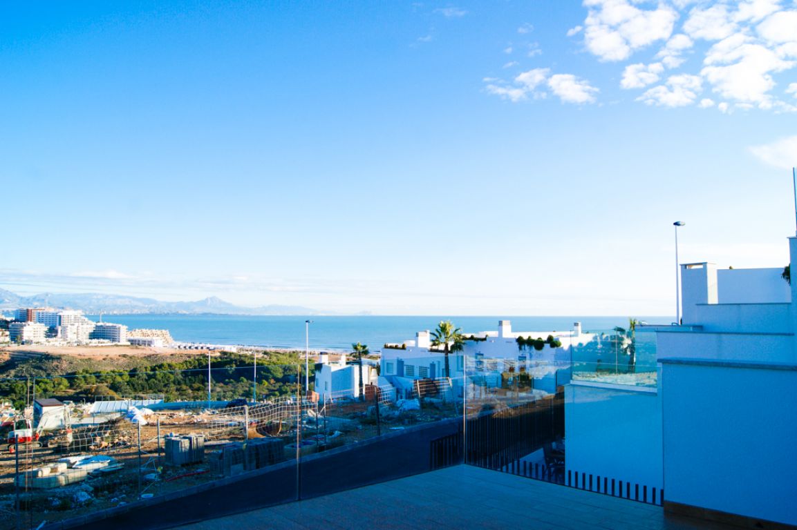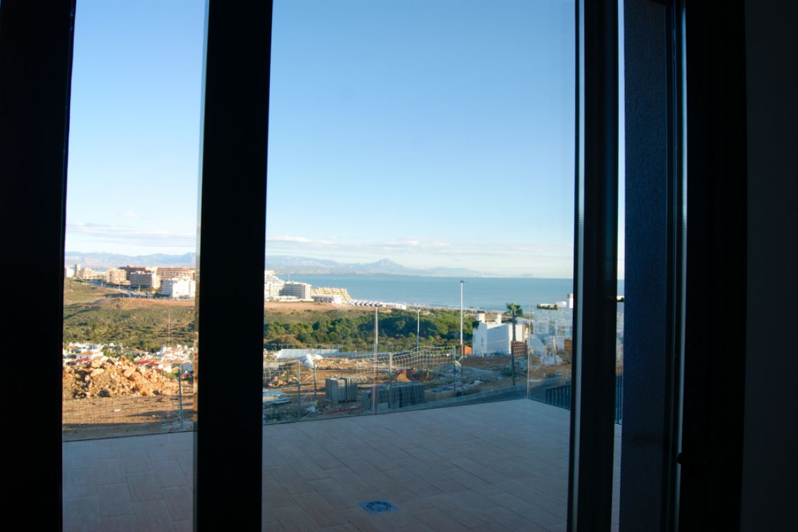 El residencial dispone de apartamentos con 1 dormitorio dotado de amplios y luminosos salones con cocina americana y terrazas con vistas al mar. El residencial dispone de bajos con parcela, amplias terrazas, parking subterráneo y calidades de primera.. . Está formado por cuatro fases de 10 viviendas cada una. Cuenta con amplias zonas comunes formadas por parking cubierto, piscinas comunitarias y zona con juegos infantiles. El área acuática y zona recreativa está compuesta por tres piscinas, dos en cascada y una para niños. Superficie de zona común aproximadamente de 300 m2.. . -Suelo gres cerámico de primera calidad.. - Puerta principal acorazada de alta seguridad con 5 puntos de anclaje.. - Ventanas blancas con rotura de puente térmico y persianas Climalit en toda la vivienda, excepto baños.. -Pintura plástica lisa en paredes y techos en color blanco.. - Muebles de cocina DM post formado y encimera en cuarzo compacto incluidos.. -Preinstalación de aire acondicionado por conductos en toda la vivienda.. - Calentador aerotermo incluido (sistema de energía renovable).. . El residencial se encuentra en Gran Alacant; Santa Pola. A tan solo 10 minutos en coche de la ciudad de Alicante. Las extensas playas que bordean la zona, el clima privilegiado que la caracteriza y la cercanía a la capital, hacen de esta zona un lugar idóneo para residir todo el año o pasar unos días de vacaciones.. . Ubicada en el mar Mediterráneo, Santa Pola es una tradicional localidad situada en una zona rica en contrastes y parajes naturales. Con un clima excepcional y privilegiado, donde se disfrutan más de 300 días de sol durante el año.. . En playas de arena fina y dorada como El Carabassí formada por un sistema que combina dunas y pinares, con la posibilidad de realizar deportes náuticos en espacios habilitados para ello. Cuenta también con un largo paseo marítimo en Arenales del Sol, que se puebla de caminantes, ciclistas y patinadores.. . Cerca de parajes como el Clot de Galvany, donde disfrutar de sus rutas con una interesante diversidad de ambientes. Miradores de Gran Alacant y El Faro o la ciudad pesquera de Santa Pola rica en patrimonio artístico.. . Un sinfín de servicios e infraestructuras en la zona, que incluye centro comercial, tiendas, mercadillo, zonas de ocio, escuela, polideportivo, servicios médicos, farmacia, bancos, oficinas administrativas, biblioteca, iglesia, parques, etc.. . A menos de 1 minuto de la playa.. A menos de 10 minutos del aeropuerto, unida por autovía y carretera.. A menos de 15 minutos del centro de Alicante y de Elche ciudad.