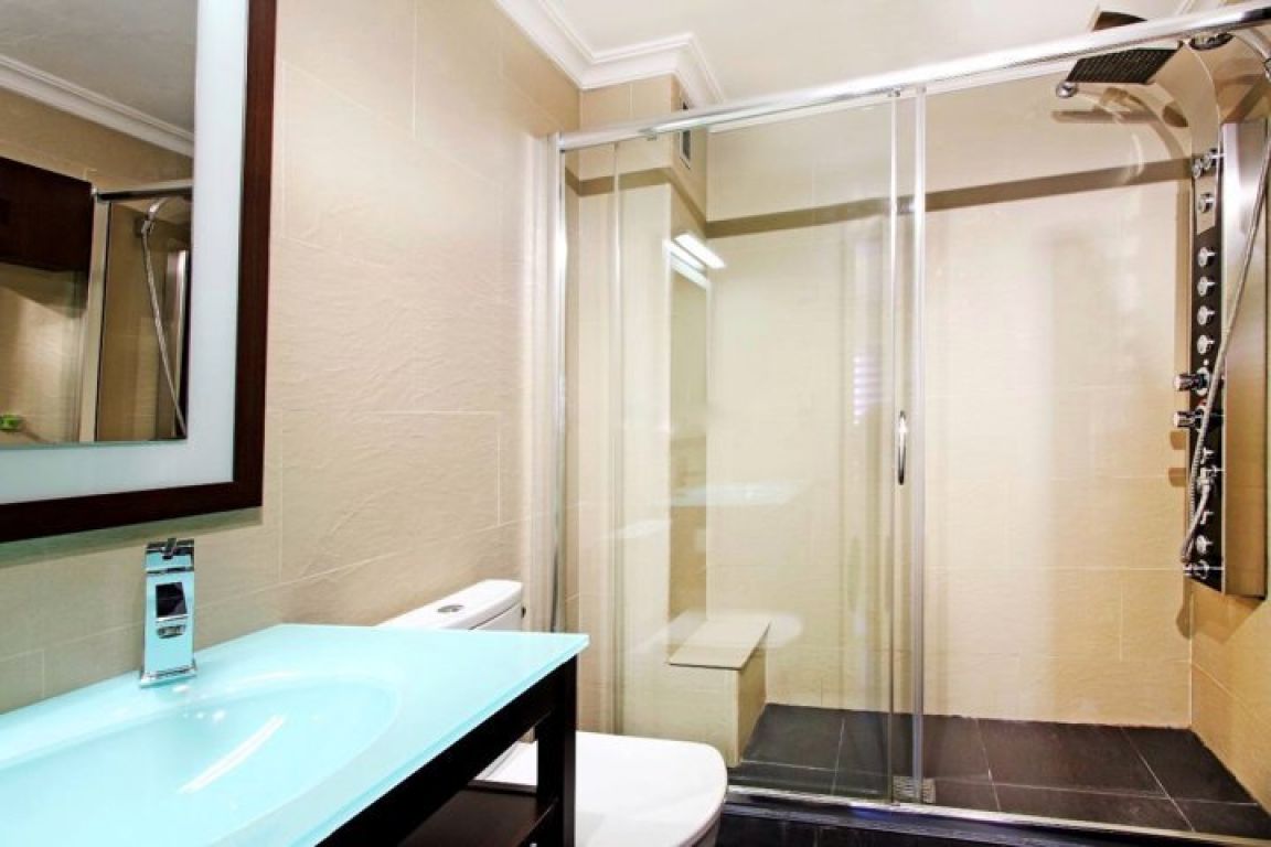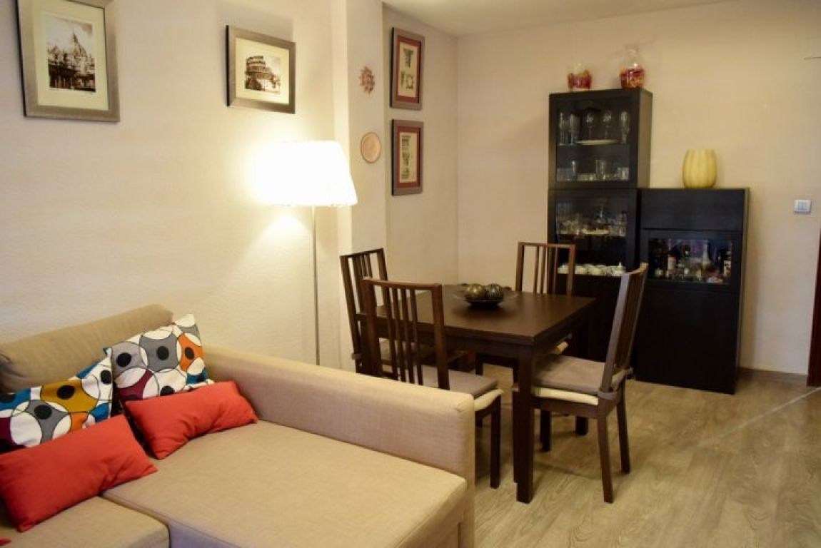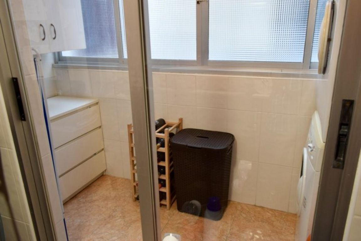 Estupenda Vivienda para entrar a vivir de 92m2, tercera planta con ascensor, la vivienda está totalmente reformada desde a penas hace 1 año.. La vivienda dispone de 3 dormitorios, 2 baños completos (uno en suite) recientemente reformados (uno con columna de hidro-masaje), cuenta con tarima flotante AC4 en toda la vivienda (excepto en baños) , salón amplio, toldos nuevos, climalit en ventanas y balconera, dos aires acondicionados nuevos de frio calor por split (en el salón y pasillo distribuidor), cocina con galería, aparato de agua de ósmosis, las habitaciones disponen de armarios empotrados; se incluyen bastantes electrodomésticos (por ej. horno e inducción recién comprados).. Muy céntrica y con todos los servicios, parada de tranvía, bus, comercios, ubicada en la tradicional alicantina calle Foguerer. . (posibilidad de alquilar 1 o 2 plazas de garaje.)