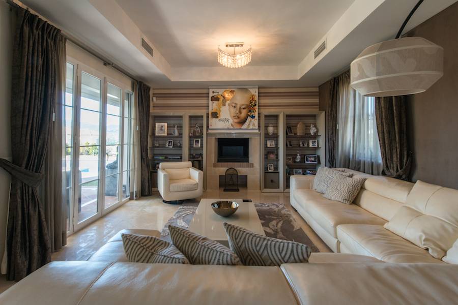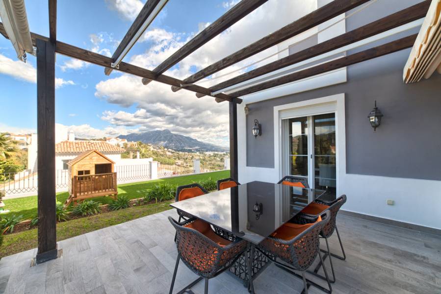 Urb. Puerto del Capitan, Benahavis. . Muy bien situado villa de calidad, al sur-oeste con vistas de la montaña y al mar, construido de 2005.. . Planta principal: hall de entrada, sala de estar con chimenea, cocina americana totalmente equipada con zona de comedor con chimenea, lavadero, baño y un dormitorio de invitados, aseo. terraza cubierta, jardín y piscina privada. Garaje. Primera planta: dormitorio principal en suite y suite de dos dormitorios de invitados. Situado en una comunidad residencial privada cerca de la carretera de Ronda, a sólo unos minutos de todas las comodidades, San Pedro centro de la ciudad y Puerto Banús.. . Villa Valentina. . Urb. Puerto del Capitan, Benahavis. . Nicely located quality villa, south to west facing with mountain- and seaviews, built 2005. Main floor: Entrance hallway, living area with fireplace, open plan fully fitted kitchen with dining area with fireplace, laundry room, one guest bedroom suite, guest toilet. Covered terrace, mature garden and private pool. Garage. First floor: Master bedroom suite and two guest bedroom suite. Located in a residential gated community near the Ronda road, only a few minutes from all amenities, San Pedro town centre and Puerto Banus.