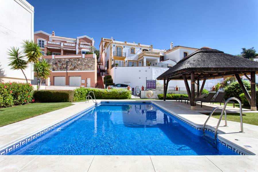 Adosado bien situado y muy bien decorado en Pueblo La Heredia de Monte Mayor. Orientación sur con vistas panorámicas al Mediterráneo y las montañas. Zona con chimenea y techos altos, comedor, cocina totalmente equipada, dormitorio principal en suite y dos dormitorios que comparten un cuarto de baño. el acceso directo a las terrazas. Posible poner una pequeña piscina. Situado cerca de la piscina de la comunidad. Cerrada y asegurada la urbanización (24 horas), a unos 15 minutos de la playa y todos los servicios. Situado junto al Marbella Club Golf Resort.. . . Well located and nicely decorated townhouse in Pueblo La Heredia de Monte Mayor. South facing with panoramic views to the Mediterrenean and the mountains. Living area with fireplace and high ceilings, dining room, fully fitted kitchen, master bedroom suite and two bedrooms sharing one bathroom. Direct access to the terraces. Possible to put a small pool. Located close to the community pool. Gated and secured (24hrs) urbanisation, about 15 minutes from the beach and all amenities. Located next to Marbella Club Golf Resort.