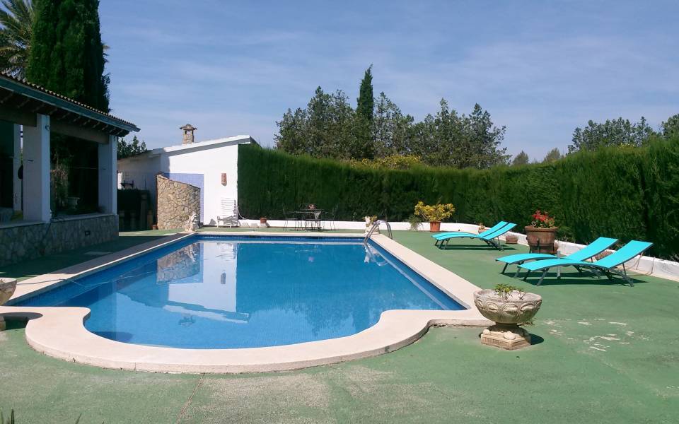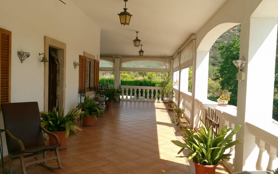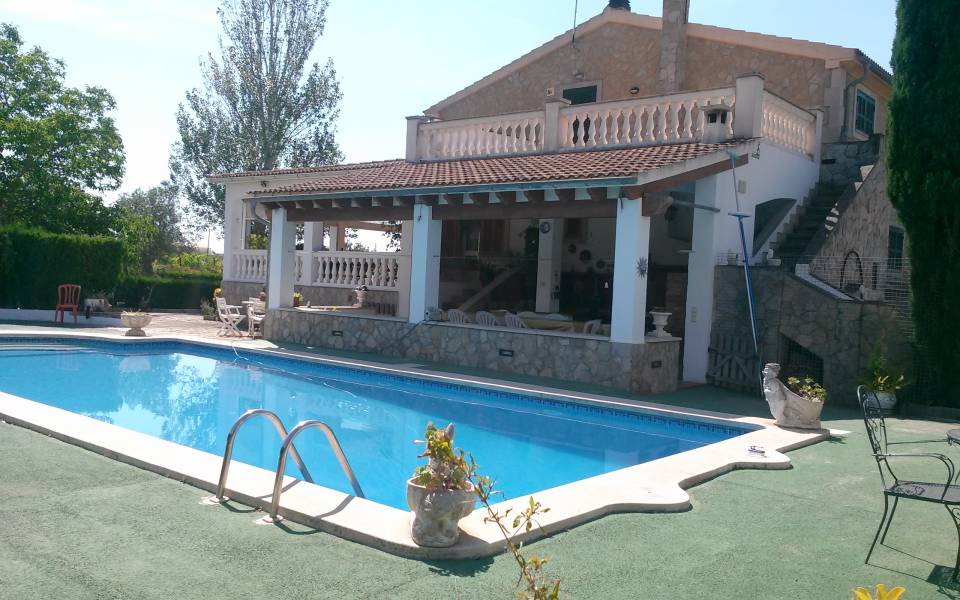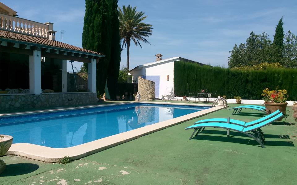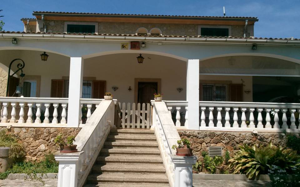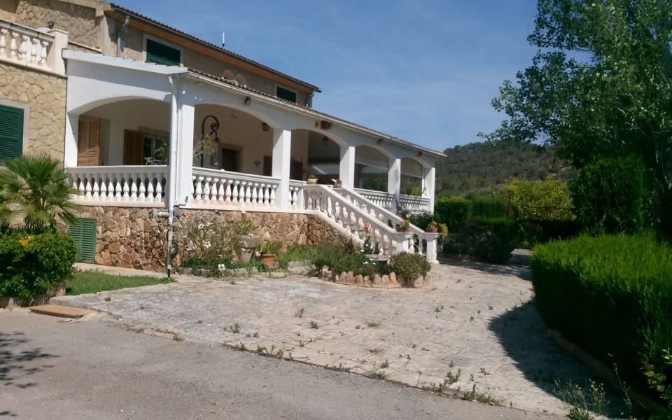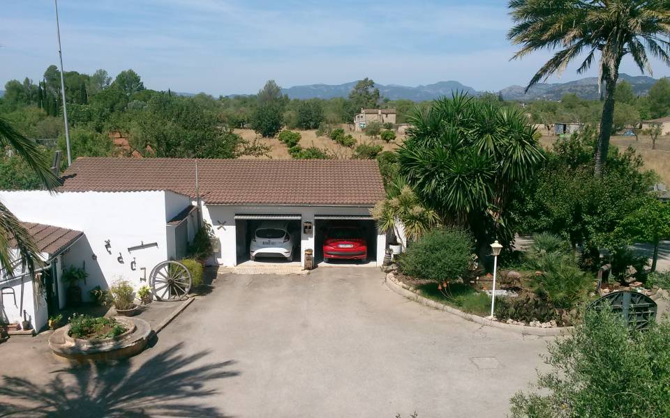 Magnífico chalet situado entre los maravillosos pueblos de Santa Maria y Bunyola, ubicado en un terreno de dos cuarteradas (aprox. 15.000 m2), excelentes conexiones al centro comercial Festival Park y autopista Palma o Inca.. . Consta de dos plantas, la planta baja de 145 metros cuadrados construidos dispone de: Cocina amueblada y equipada, comedor, salón, tres habitaciones dobles y un baño completo. Terraza de 60 m2, lavandería, trastero, barbacoa con cocina industrial y horno, Aseo, (no incluidos en los 145 m2) y piscina con ducha de agua caliente y fría, bonito jardín mediterráneo y árboles frutales todo con sistema de riego por goteo.. Primera planta: tres habitaciones dobles con baño en suite y una pequeña para servicio, despacho o plancha, más dos terrazas.. . Buenas calidades de construcción, planta baja suelos de gres, planta primera suelos de parquet, ventanas exteriores aluminio, carpintería interior madera, climalit, calefacción central por gasoil, aire acondicionado, goteo, posibilidad de conectar alarma, WI-FI. Cuatro plazas de parking cubiertas y posibilidad de muchas más plazas descubiertas, barrera automática.. .