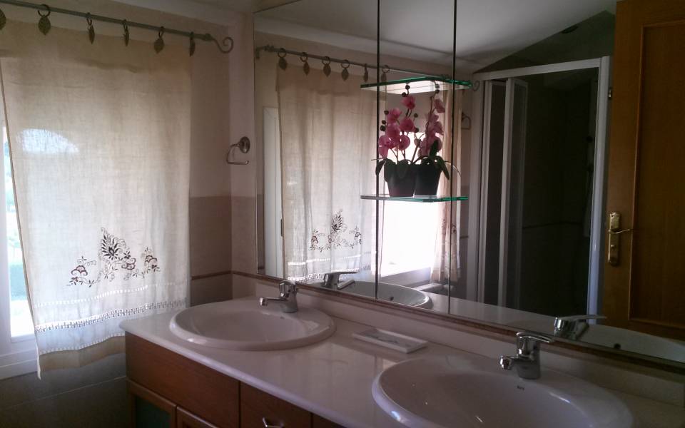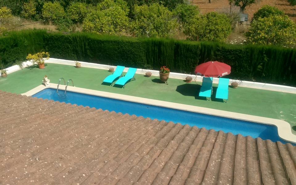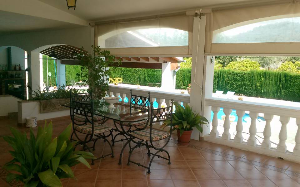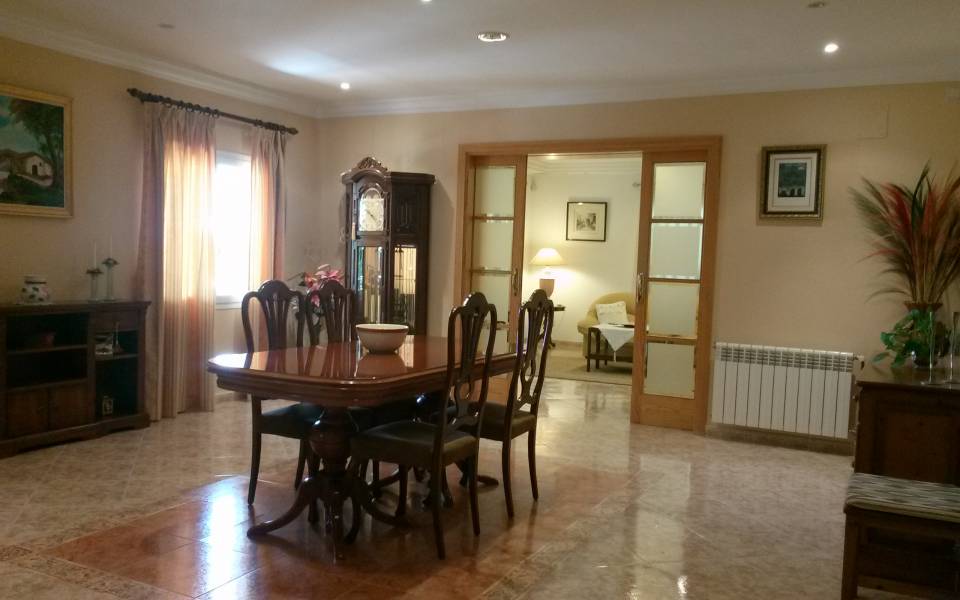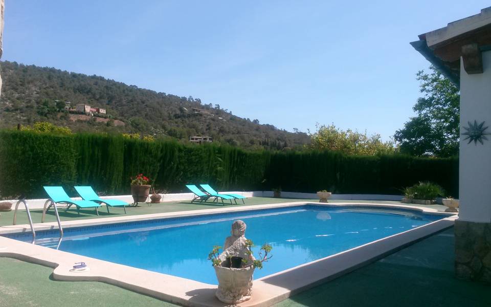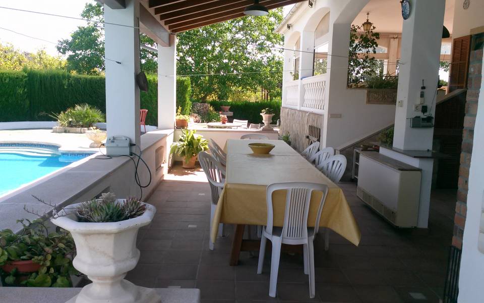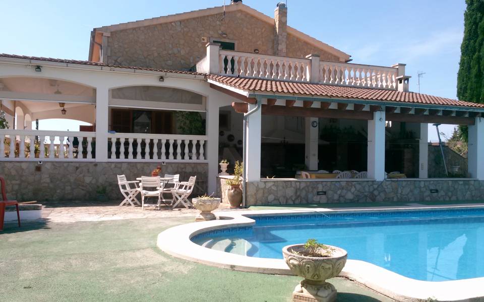 Magnífico chalet situado entre los maravillosos pueblos de Santa Maria y Bunyola, ubicado en un terreno de dos cuarteradas (aprox. 15.000 m2), excelentes conexiones al centro comercial Festival Park y autopista Palma o Inca.. . Consta de dos plantas, la planta baja de 145 metros cuadrados construidos dispone de: Cocina amueblada y equipada, comedor, salón, tres habitaciones dobles y un baño completo. Terraza de 60 m2, lavandería, trastero, barbacoa con cocina industrial y horno, Aseo, (no incluidos en los 145 m2) y piscina con ducha de agua caliente y fría, bonito jardín mediterráneo y árboles frutales todo con sistema de riego por goteo.. Primera planta: tres habitaciones dobles con baño en suite y una pequeña para servicio, despacho o plancha, más dos terrazas.. . Buenas calidades de construcción, planta baja suelos de gres, planta primera suelos de parquet, ventanas exteriores aluminio, carpintería interior madera, climalit, calefacción central por gasoil, aire acondicionado, goteo, posibilidad de conectar alarma, WI-FI. Cuatro plazas de parking cubiertas y posibilidad de muchas más plazas descubiertas, barrera automática.. .