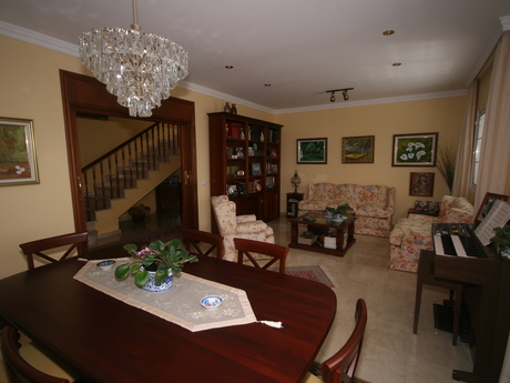 Espectacular chalet independiente de dos plantas con piscina sobre una parcela de 576 m² y bonitas vistas al mar que se distribuye en planta baja con salón-comedor, un dormitorio, un baño y cocina con sala de estar-comedor con 32,3 m². En la segunda planta hay 4 dormitorios con armarios empotrados, el principal en suite con 32,7 m² más otro baño completo. La casa dispone de una piscina de aprox. 9x6, varias zonas ajardinadas, un salón acristalado y una pérgola exterior para comidas. La piscina dispone de un baño externo a la casa. Garaje para 5-6 coches, dos grandes trasteros y un aseo en el sótano. Placa solar, depósito de agua, cristales dobles. Materiales de primerísima calidad. Visítela