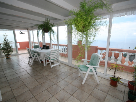Estupendo chalet independiente con 270 m² construidos sobre una parcela de 1008 m² en una sola planta que se distribuye en salón- comedor,cinco dormitorios con armarios empotrados, varios de ellos usados ahora como despacho o cuarto de lectura, dos baños, uno de ellos dentro de la habitación principal, cocina amueblada y varias terrazas, una de ellas techada y cerrada. Tiene anexo un apartamento de 30 m² con un salon-dormitorio, baño y cocina equipada. Garaje de 40 m². Tiene dos zonas ajardinadas debajo de la casa en terrazas con riego que incluyen dos cuartos de aperos. Impresionantes vistas de toda la costa norte de la isla. Venga a visitarla.