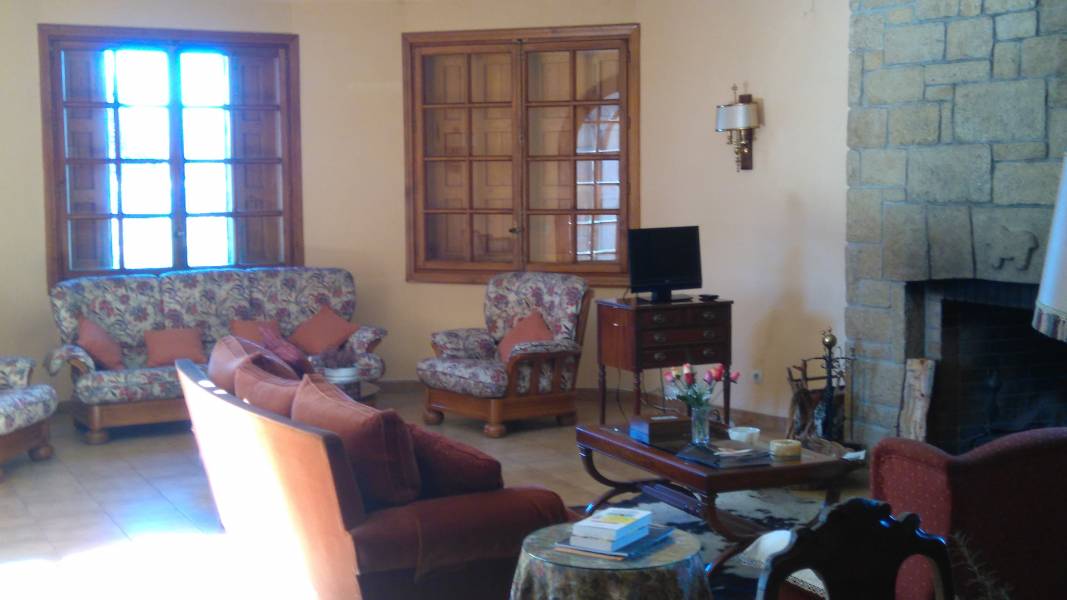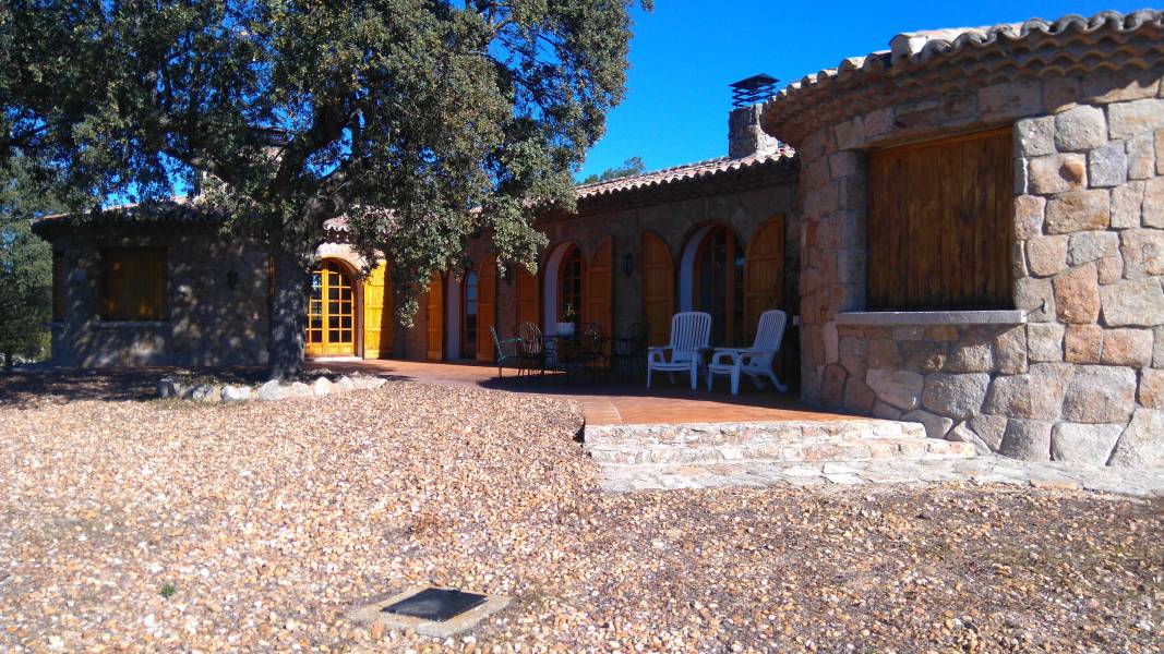 Casa de 250 metros construidos distribuidos en una sola planta. Gran salón comedor dividido en 2 ambientes. 6 dormitorios, el principal con cuarto de baño y salita. Cocina muy amplia con un enorme ventanal. Cuenta además con otro cuarto de baño completo y un aseo. También un cuarto de calderas y un amplío garaje con capacidad para 4 coches. En el exterior un porche de 100 metros cuadrados. La casa se encuentra situada en un maravilloso enclave natural, en la orilla del pantano de Valmayor, con vistas al Monasterio de El Escorial y tiene 16 Has. repletas de pinos y encinas centenarios. La finca está vallada.