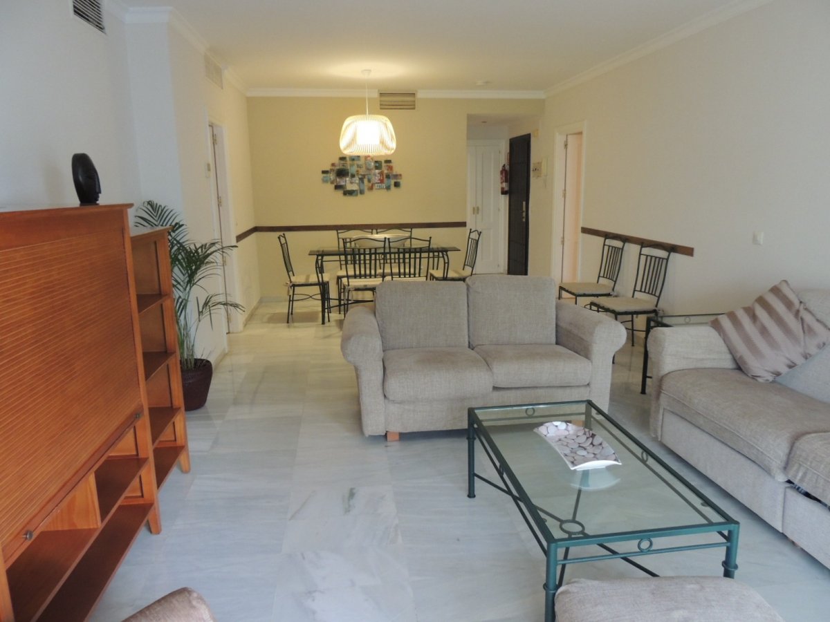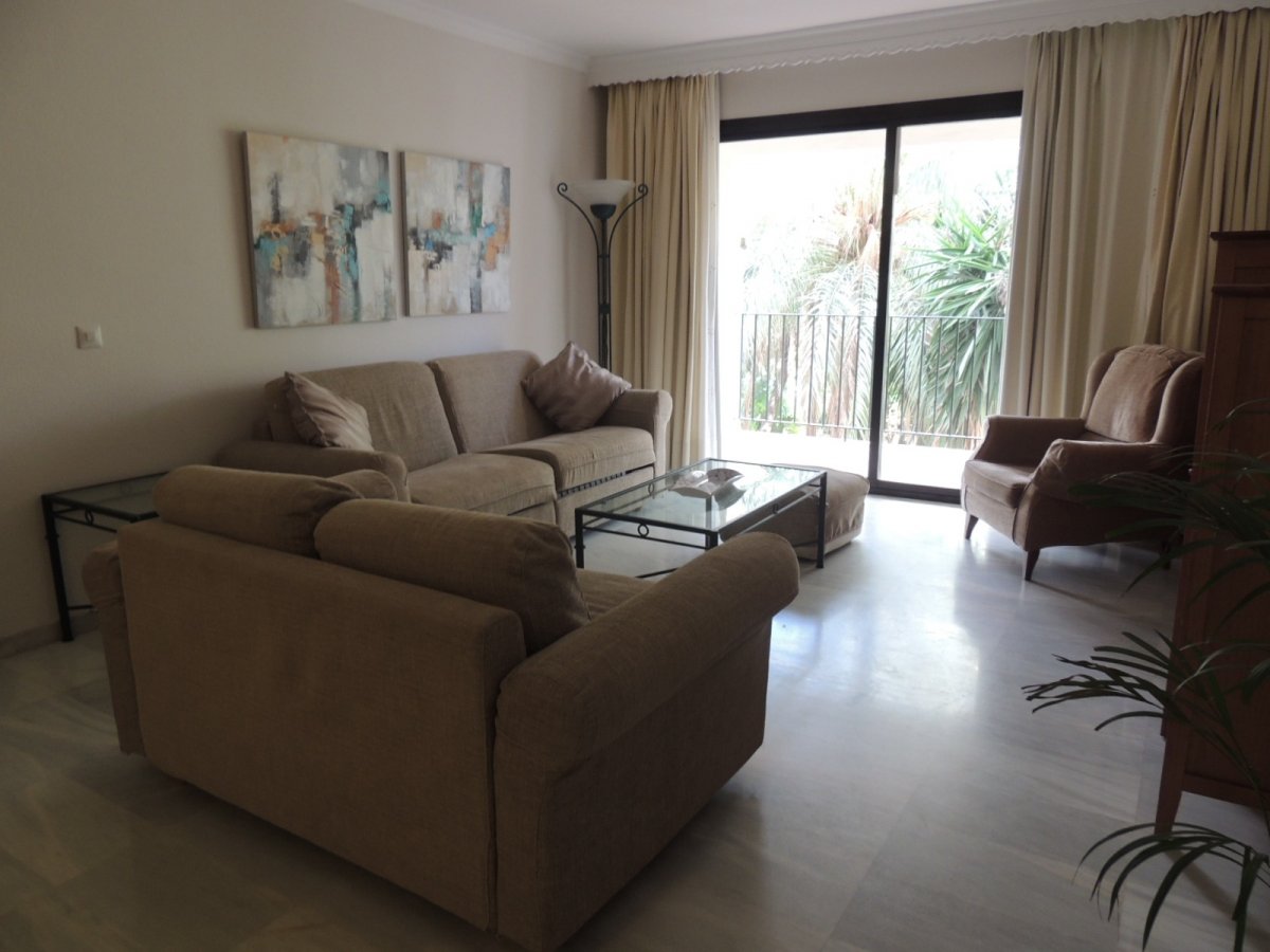 Jardines del Puerto, uno de los más céntricos complejos en el Puerto Banus con servicio de conserjería 24 horas. La propiedad consiste en 3 dormitorios de tamaño 130 m 2; tiene una habitación con cama de matrimonio; cuarto de baño; y otra habitación con dos camas; y una habitacion mas; salón comedor con mesa, un sofá y un set de TV y DVD; cocina completamente equipada con vitro-cerámica y horno, navajilla, lavadora; frigorífico, microonda, utensilios de cocina y cristalería -cubertería-vajilla; terraza con mesa y sillas con vistas al jardin. Los jardines tropicales, varias piscinas, y pistas de paddle tenis. La situación es inmejorable, todas las comunidades cerca, restaurantes, tiendas, cafeterías, farmacia, centro comercial El Corte Ingles, famoso el Puerto Banus con la boutique de las marcas famosas, como Dior, Gucci etc.