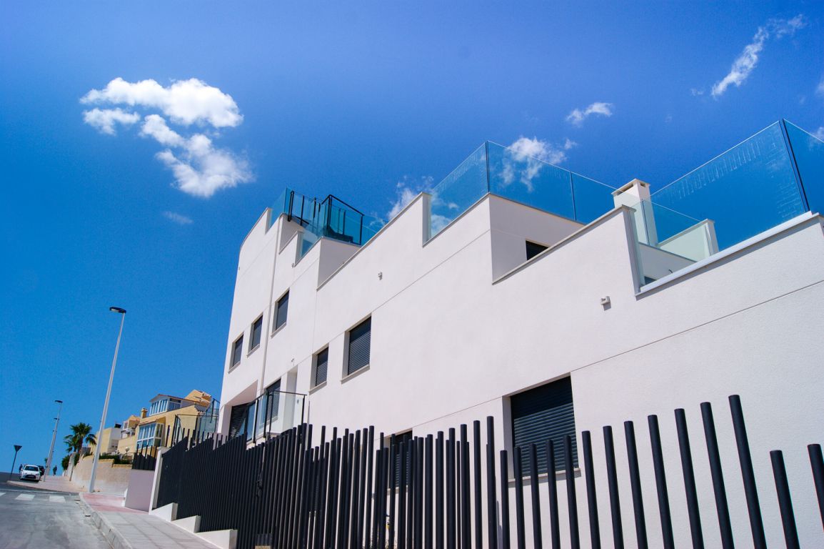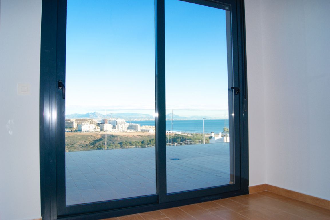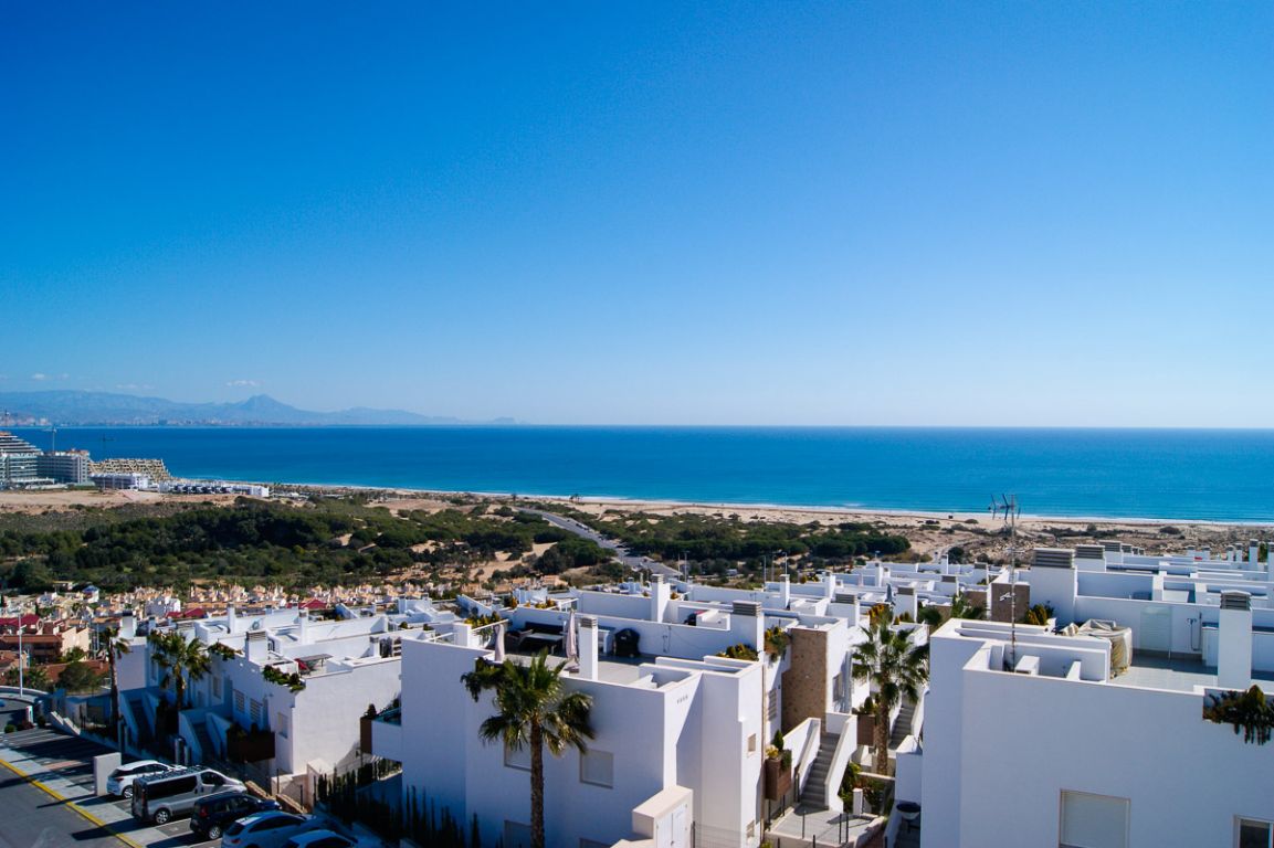 El residencial dispone de apartamentos con 1 dormitorio dotado de amplios y luminosos salones con cocina americana y terrazas con vistas al mar. El residencial dispone de bajos con parcela, amplias terrazas, parking subterráneo y calidades de primera.. . Está formado por cuatro fases de 10 viviendas cada una. Cuenta con amplias zonas comunes formadas por parking cubierto, piscinas comunitarias y zona con juegos infantiles. El área acuática y zona recreativa está compuesta por tres piscinas, dos en cascada y una para niños. Superficie de zona común aproximadamente de 300 m2.. . -Suelo gres cerámico de primera calidad.. - Puerta principal acorazada de alta seguridad con 5 puntos de anclaje.. - Ventanas blancas con rotura de puente térmico y persianas Climalit en toda la vivienda, excepto baños.. -Pintura plástica lisa en paredes y techos en color blanco.. - Muebles de cocina DM post formado y encimera en cuarzo compacto incluidos.. -Preinstalación de aire acondicionado por conductos en toda la vivienda.. - Calentador aerotermo incluido (sistema de energía renovable).. . El residencial se encuentra en Gran Alacant; Santa Pola. A tan solo 10 minutos en coche de la ciudad de Alicante. Las extensas playas que bordean la zona, el clima privilegiado que la caracteriza y la cercanía a la capital, hacen de esta zona un lugar idóneo para residir todo el año o pasar unos días de vacaciones.. . Ubicada en el mar Mediterráneo, Santa Pola es una tradicional localidad situada en una zona rica en contrastes y parajes naturales. Con un clima excepcional y privilegiado, donde se disfrutan más de 300 días de sol durante el año.. . En playas de arena fina y dorada como El Carabassí formada por un sistema que combina dunas y pinares, con la posibilidad de realizar deportes náuticos en espacios habilitados para ello. Cuenta también con un largo paseo marítimo en Arenales del Sol, que se puebla de caminantes, ciclistas y patinadores.. . Cerca de parajes como el Clot de Galvany, donde disfrutar de sus rutas con una interesante diversidad de ambientes. Miradores de Gran Alacant y El Faro o la ciudad pesquera de Santa Pola rica en patrimonio artístico.. . Un sinfín de servicios e infraestructuras en la zona, que incluye centro comercial, tiendas, mercadillo, zonas de ocio, escuela, polideportivo, servicios médicos, farmacia, bancos, oficinas administrativas, biblioteca, iglesia, parques, etc.. . A menos de 1 minuto de la playa.. A menos de 10 minutos del aeropuerto, unida por autovía y carretera.. A menos de 15 minutos del centro de Alicante y de Elche ciudad.