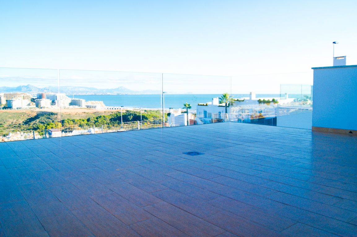 El residencial dispone de apartamentos con 2 dormitorios dotados de amplios y luminosos salones con cocina americana y terrazas con vistas al mar. El residencial dispone de bajos con parcela, amplias terrazas, parking subterráneo y calidades de primera.. . Está formado por cuatro fases de 10 viviendas cada una. Cuenta con amplias zonas comunes formadas por parking cubierto, piscinas comunitarias y zona con juegos infantiles. El área acuática y zona recreativa está compuesta por tres piscinas, dos en cascada y una para niños. Superficie de zona común aproximadamente de 300 m2.. . -Suelo gres cerámico de primera calidad.. - Puerta principal acorazada de alta seguridad con 5 puntos de anclaje.. - Ventanas blancas con rotura de puente térmico y persianas Climalit en toda la vivienda, excepto baños.. -Pintura plástica lisa en paredes y techos en color blanco.. - Muebles de cocina DM post formado y encimera en cuarzo compacto incluidos.. -Preinstalación de aire acondicionado por conductos en toda la vivienda.. - Calentador aerotermo incluido (sistema de energía renovable).. . El residencial se encuentra en Gran Alacant; Santa Pola. A tan solo 10 minutos en coche de la ciudad de Alicante. Las extensas playas que bordean la zona, el clima privilegiado que la caracteriza y la cercanía a la capital, hacen de esta zona un lugar idóneo para residir todo el año o pasar unos días de vacaciones.. . Ubicada en el mar Mediterráneo, Santa Pola es una tradicional localidad situada en una zona rica en contrastes y parajes naturales. Con un clima excepcional y privilegiado, donde se disfrutan más de 300 días de sol durante el año.. . En playas de arena fina y dorada como El Carabassí formada por un sistema que combina dunas y pinares, con la posibilidad de realizar deportes náuticos en espacios habilitados para ello. Cuenta también con un largo paseo marítimo en Arenales del Sol, que se puebla de caminantes, ciclistas y patinadores.. . Cerca de parajes como el Clot de Galvany, donde disfrutar de sus rutas con una interesante diversidad de ambientes. Miradores de Gran Alacant y El Faro o la ciudad pesquera de Santa Pola rica en patrimonio artístico.. . Un sinfín de servicios e infraestructuras en la zona, que incluye centro comercial, tiendas, mercadillo, zonas de ocio, escuela, polideportivo, servicios médicos, farmacia, bancos, oficinas administrativas, biblioteca, iglesia, parques, etc.. . A menos de 1 minuto de la playa.. A menos de 10 minutos del aeropuerto, unida por autovía y carretera.. A menos de 15 minutos del centro de Alicante y de Elche ciudad.