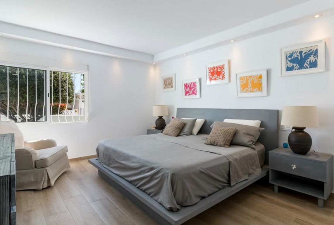 Magnífica casa adosada, única en su estilo, de gran elegancia y gusto. Está situado en uno de los mejores enclaves de Marbella, a un minuto a pie del famoso Club Real de Golf de Guadalmina, y tiene magníficas vistas al mar Mediterráneo ya Gibraltar y la costa africana. 300 metros habitable recientemente renovado y amueblado con las mejores calidades y estilo. Tiene 3 dormitorios cada uno con baño en suite, 2 de las habitaciones también tienen amplio vestidor. Un inodoro para los huéspedes. Cocina de diseño, equipada con electrodomésticos de marca Neff . Dispone de chimenea, aire acondicionado, lavadero, trastero, garaje para 2 vehículos. Ofrece 2 ambientes diferentes, una gran terraza con inmejorables vistas al mar, así como un jardín privado con terraza y vistas a la famosa Concha de Marbella. Equipado con todas las comodidades necesarias, tales como lavadora, electrodomésticos, lavavajillas, cubiertos, sábanas, internet de fibra óptica y línea telefónica.