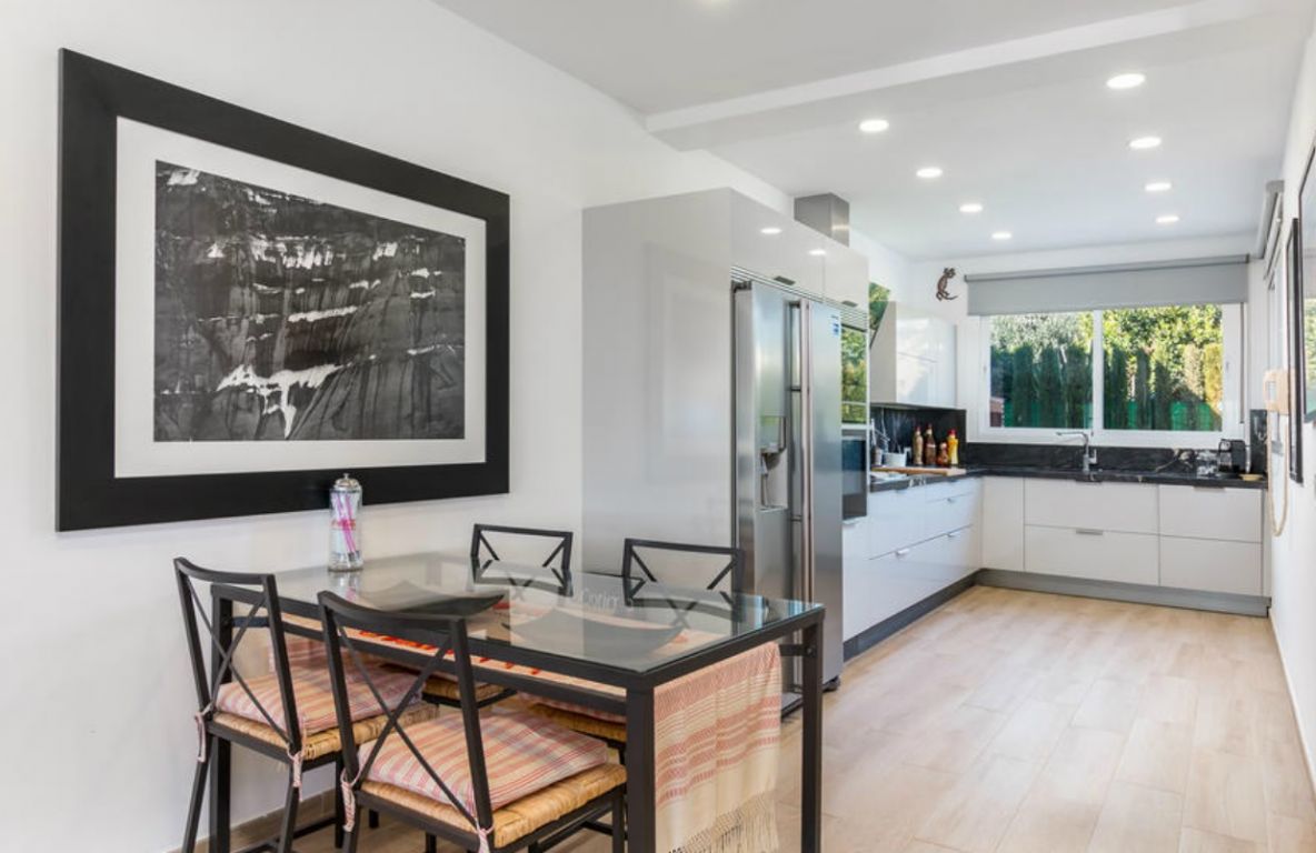 Magnífica casa adosada, única en su estilo, de gran elegancia y gusto. Está situado en uno de los mejores enclaves de Marbella, a un minuto a pie del famoso Club Real de Golf de Guadalmina, y tiene magníficas vistas al mar Mediterráneo ya Gibraltar y la costa africana. 300 metros habitable recientemente renovado y amueblado con las mejores calidades y estilo. Tiene 3 dormitorios cada uno con baño en suite, 2 de las habitaciones también tienen amplio vestidor. Un inodoro para los huéspedes. Cocina de diseño, equipada con electrodomésticos de marca Neff . Dispone de chimenea, aire aco... Leer más