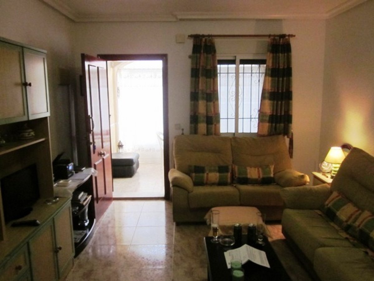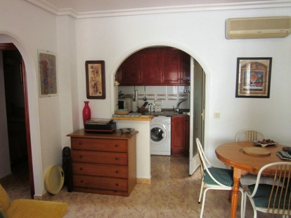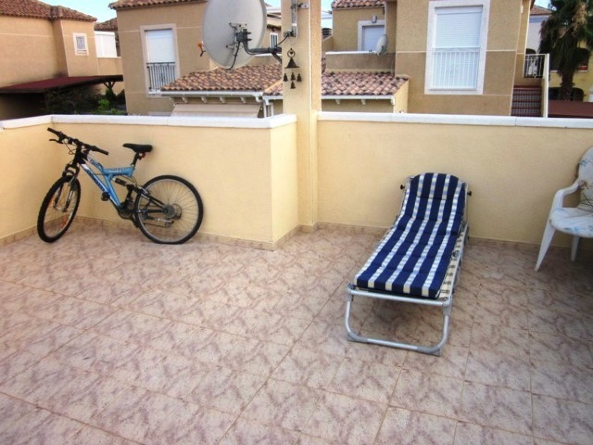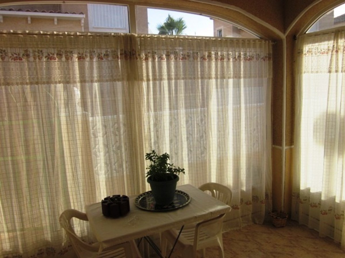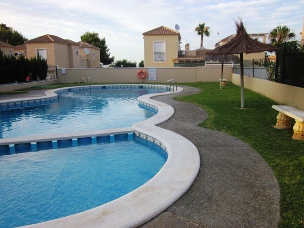 Adosada en Torrevieja zona Lago jardin, 50 m. de superficie, 27 m. superficie parcela, 53 m2 de terraza, 4 m. de la playa (km), 2 habitaciones dobles, un baño, propiedad reformada, cocina equipada, carpinteria interior de madera, orientación sur, suelo de cerámico, carpintería exterior de aluminio / climalit. . Extras: agua, aire acondicionado , armarios empotrados, luminoso, luz, muebles, patio, piscina comunitaria, solárium con pergola y toldos, terraza, trastero, garaje incluído.. cerca a esta propiedad tienes, autobuses, árboles, centros comerciales, colegios, golf, hospitales, urbanización, zonas infantiles..