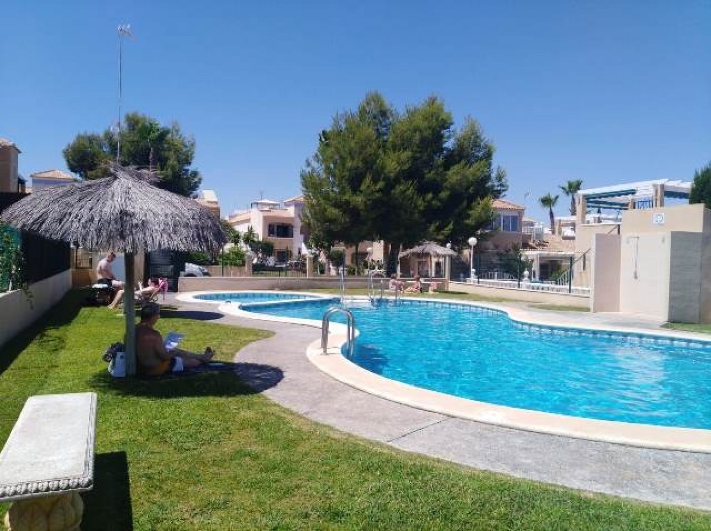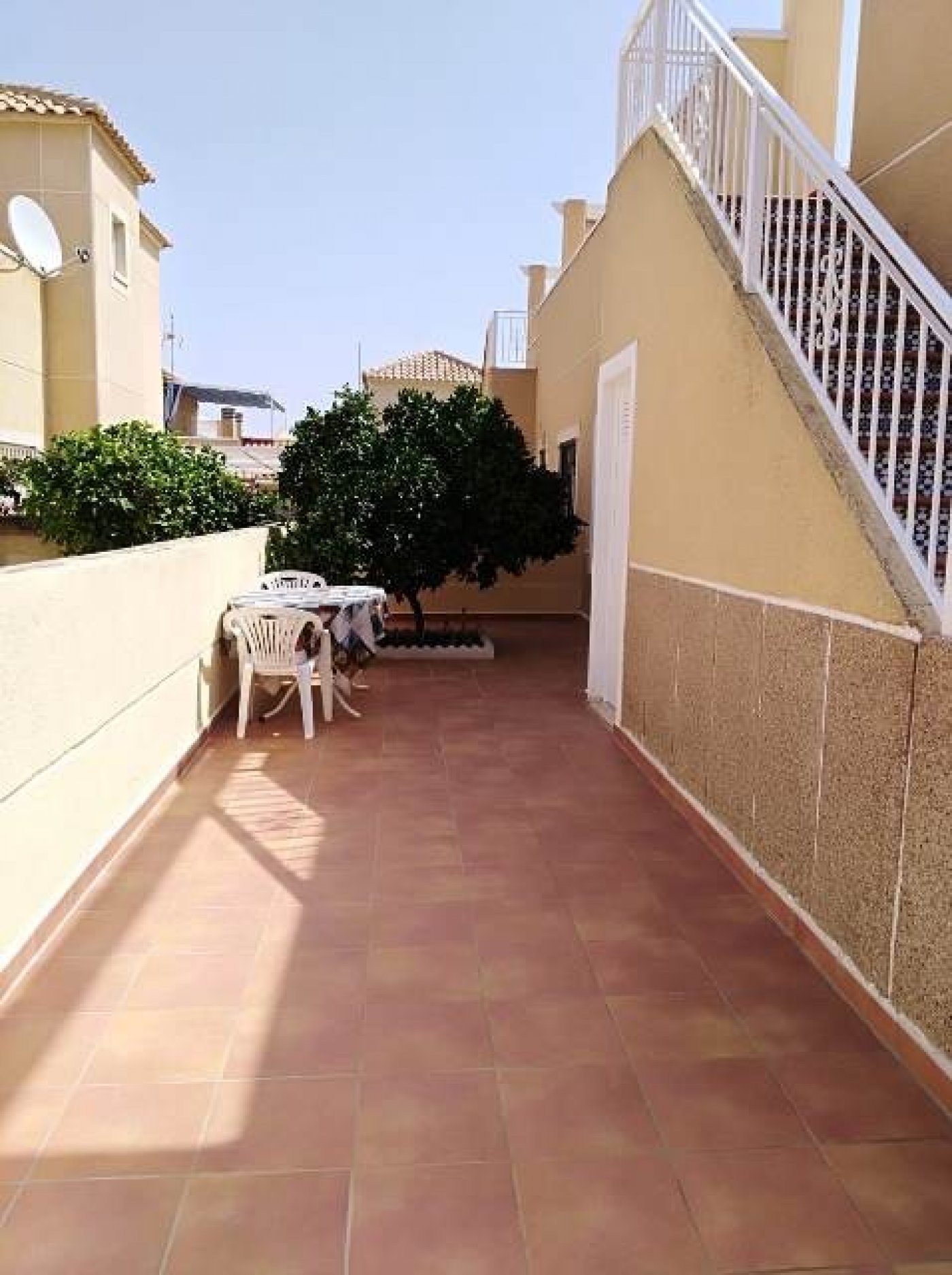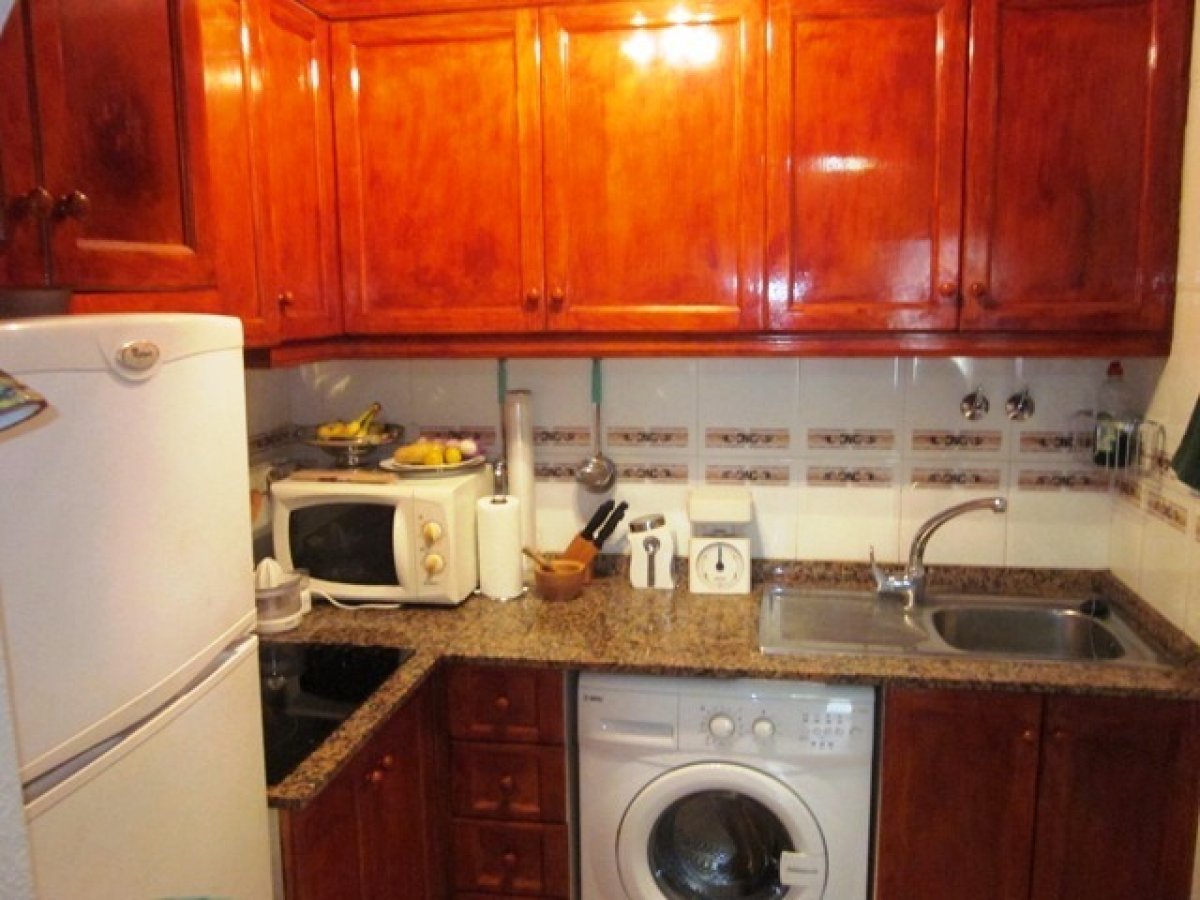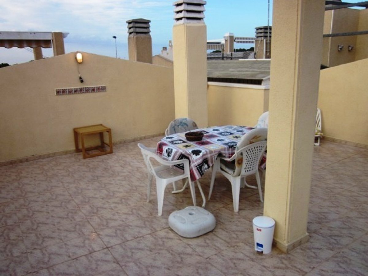 Adosada en Torrevieja zona Lago jardin, 50 m. de superficie, 27 m. superficie parcela, 53 m2 de terraza, 4 m. de la playa (km), 2 habitaciones dobles, un baño, propiedad reformada, cocina equipada, carpinteria interior de madera, orientación sur, suelo de cerámico, carpintería exterior de aluminio / climalit. . Extras: agua, aire acondicionado , armarios empotrados, luminoso, luz, muebles, patio, piscina comunitaria, solárium con pergola y toldos, terraza, trastero, garaje incluído.. cerca a esta propiedad tienes, autobuses, árboles, centros comerciales, colegios, golf, hospitales, urbanización, zonas infantiles..