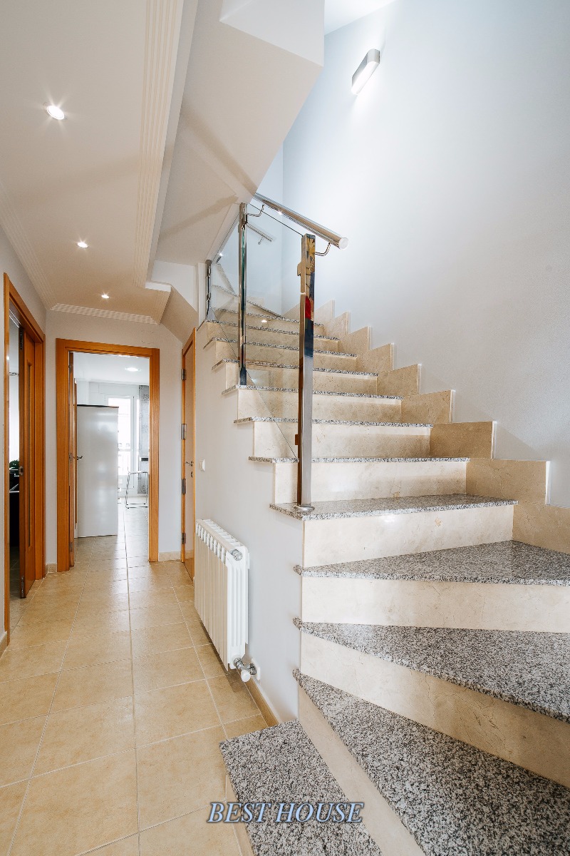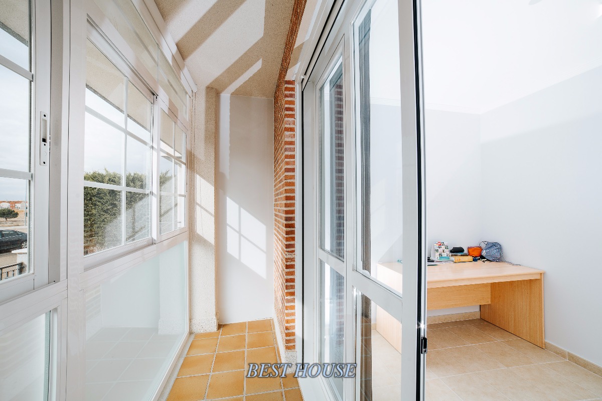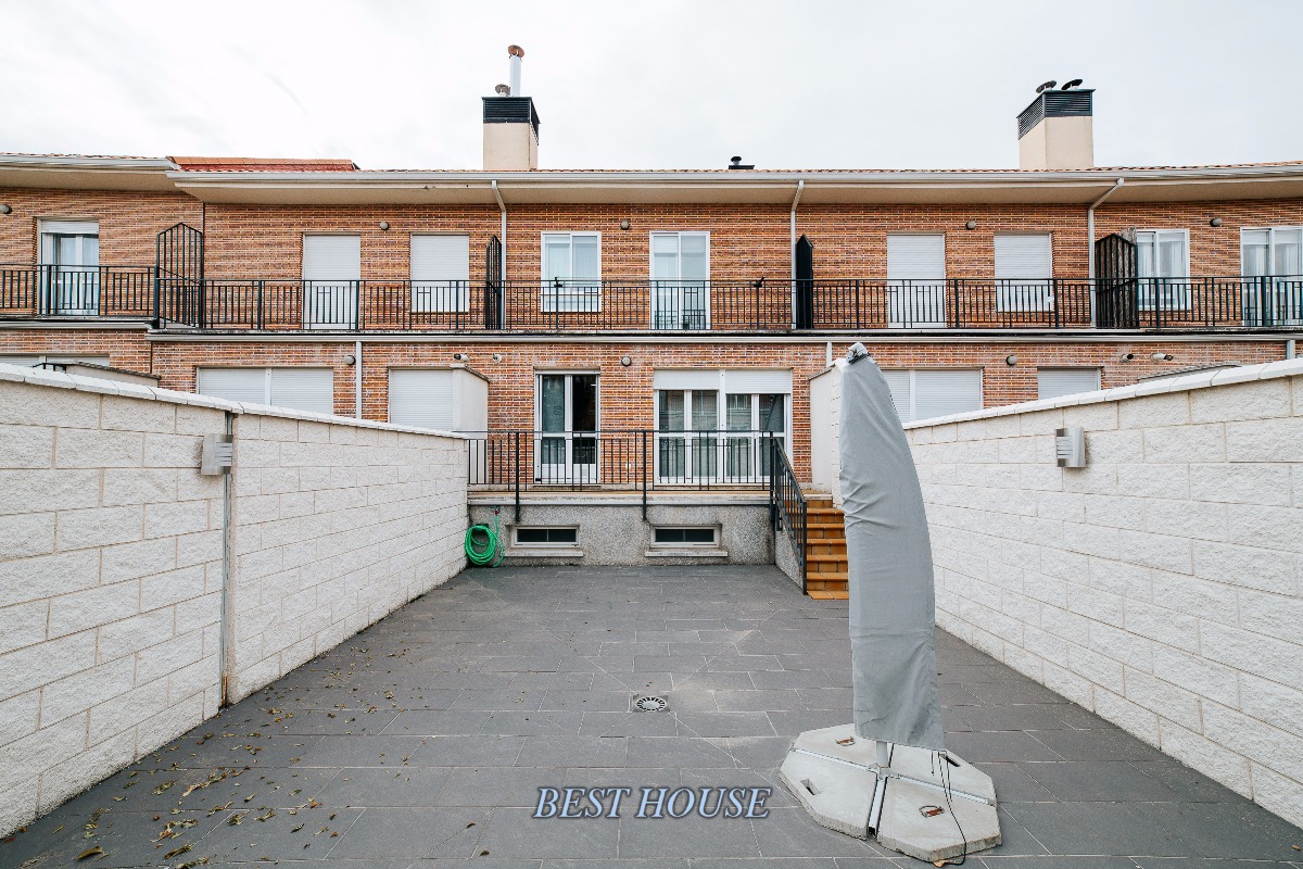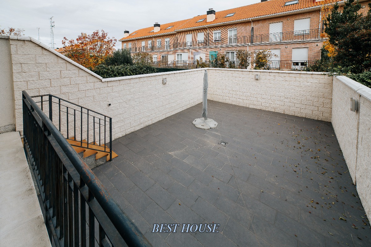 Precioso chalet adosado en Villanubla, a 10 min de Valladolid, y a 2 del aeropuerto. Se distribuye en planta sótano, en el que dispone de un gran garaje de 75 metros, con un precioso aseo y una zona apartada de almacenamiento y en otro cuarto anejo esta la lavandería. En la planta principal a traves del hall distribuidor, acedemos a una habitación con terraza acristalada, un coqueto aseo, y un impresionante salón con mucha luz. Una amplia y preciosa cocina, con acceso a un gran patio privado. En la primera planta se encuentran 3 habitaciones (una de ellas convertida en un elegante vestidor) y dos baños completos (uno con bañera y otro con ducha). Y en la ultima planta se encuentra una magnifica buhardilla completamente acondicionada, con ventana tipo ve-lux.