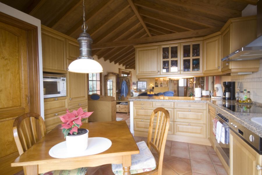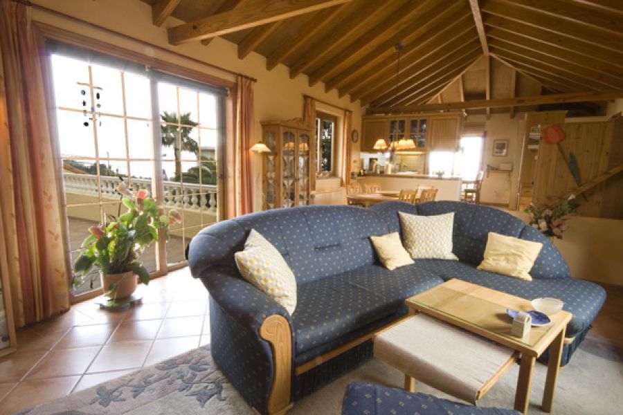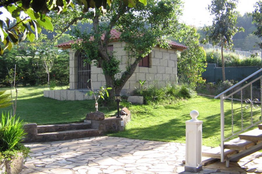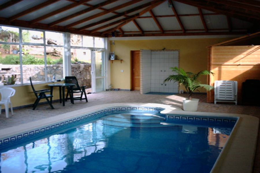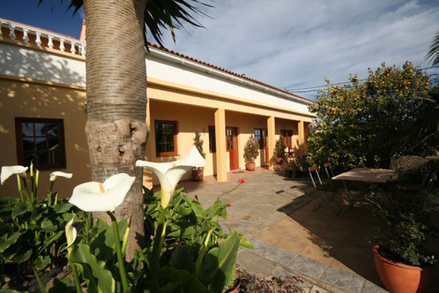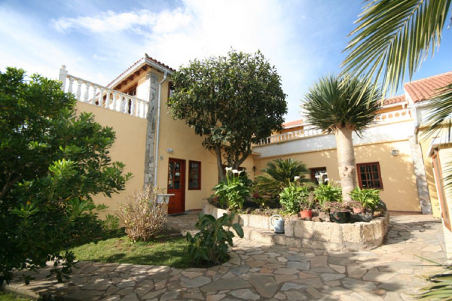 Descripción del inmueble .La edificación consta de 2 partes y está formada como una "L". En la parte larga están ubicados 3 apartamentos individuales, cada uno con su baño, cocina y dormitorio. El apto. mayor tiene dos dormitorios con dos baños y cocina. Además hay un salón chimenea con otra cocina amplia con su salón y comedor. En total son unos 130m2 dividido en 3 unidades.. En la parte corta de la "L" (con 2 plantas) se encuentra otra vivienda con 2 dormitorios, baño y cocina/estar. Además está ubicada la oficina, una dispensa para la ropa/toallas, cuarto lavar y otro baño. La oficina y dispensa con el baño se puede convertir facilmente en otro apartamento.. Capacidad total de huéspedes = 12 plazas. . En la parte alta de la casa está la vivienda principal (privada) con su cocina, comedor con salón, un baño de 15 m2, el dormitorio y un cuarto ropa. Del dormitorio y del salón hay acceso a dos terrazas 30m2 + 14m2 y a la buhardilla de 110 m2 que está puesto encima de los apartamentos.. . Las ventanas son de fabricación alemana con su cristal especial (climalit +). Las instalaciones son de alta estándar y de calidad alemana. La casa dispone de calefacción central con un sistema mixto de energía solar / bomba calor y gas Depósito de agua caliente de 400 litros. Conexión a la red eléctrica – 3 fásico – La parcela I tiene una superficie de 1072 m2. Las edificaciónes 374 m2. . . En total son: . . 7 dormitorios. 6 + 2 baños. 3 + 3 cocinas. 1 piscina (cubierta) + sauna + jacuzzi. jardines de aprox. 1.200 m2, entre ellos 9 palmeras, varios frutales y un drago. 2 cuartos de herramientas. 2 garajes. 6 parking. 2 solares con un total de 2.174 m2 urbano. . La parcela II mide 1102 m2 (urbano ! ) en cual se encuentra el complejo de los 2 garajes y el salón del a piscina. La sauna y el jacuzzi están instalado también en el mismo salón de 7.50m x 15.00m aislado con planchas de poliuretano. La piscina en si está equipado con sistema de contracorriente y calefacción solar.. . Al lado de la puerta de acceso y frente de los garajes está el parking para hasta 6 coches con acceso de la calle. Según el nuevo plan general de El Rosario en la misma parcela queda la posibilidad de una nueva construcción de chalet con una superficie de unos 160 m2.
