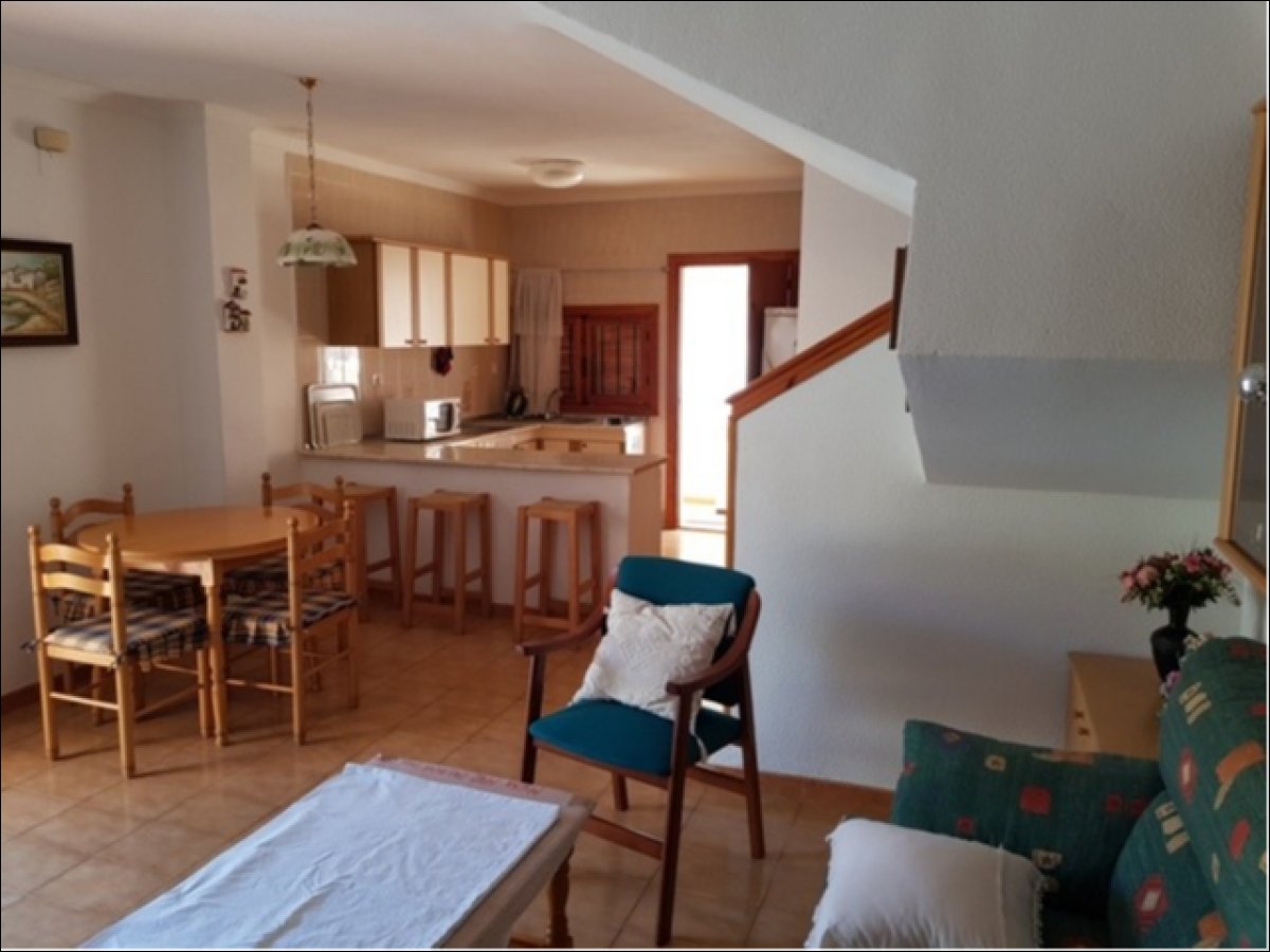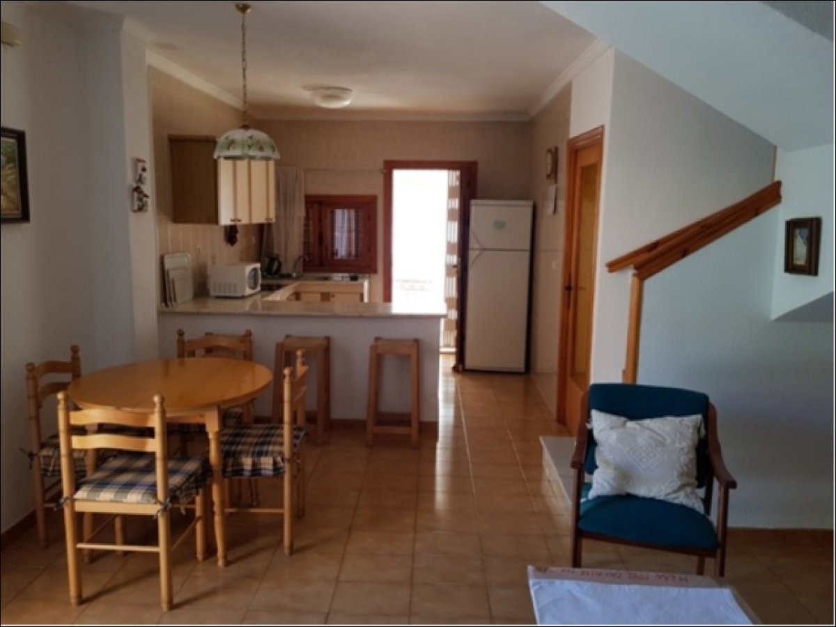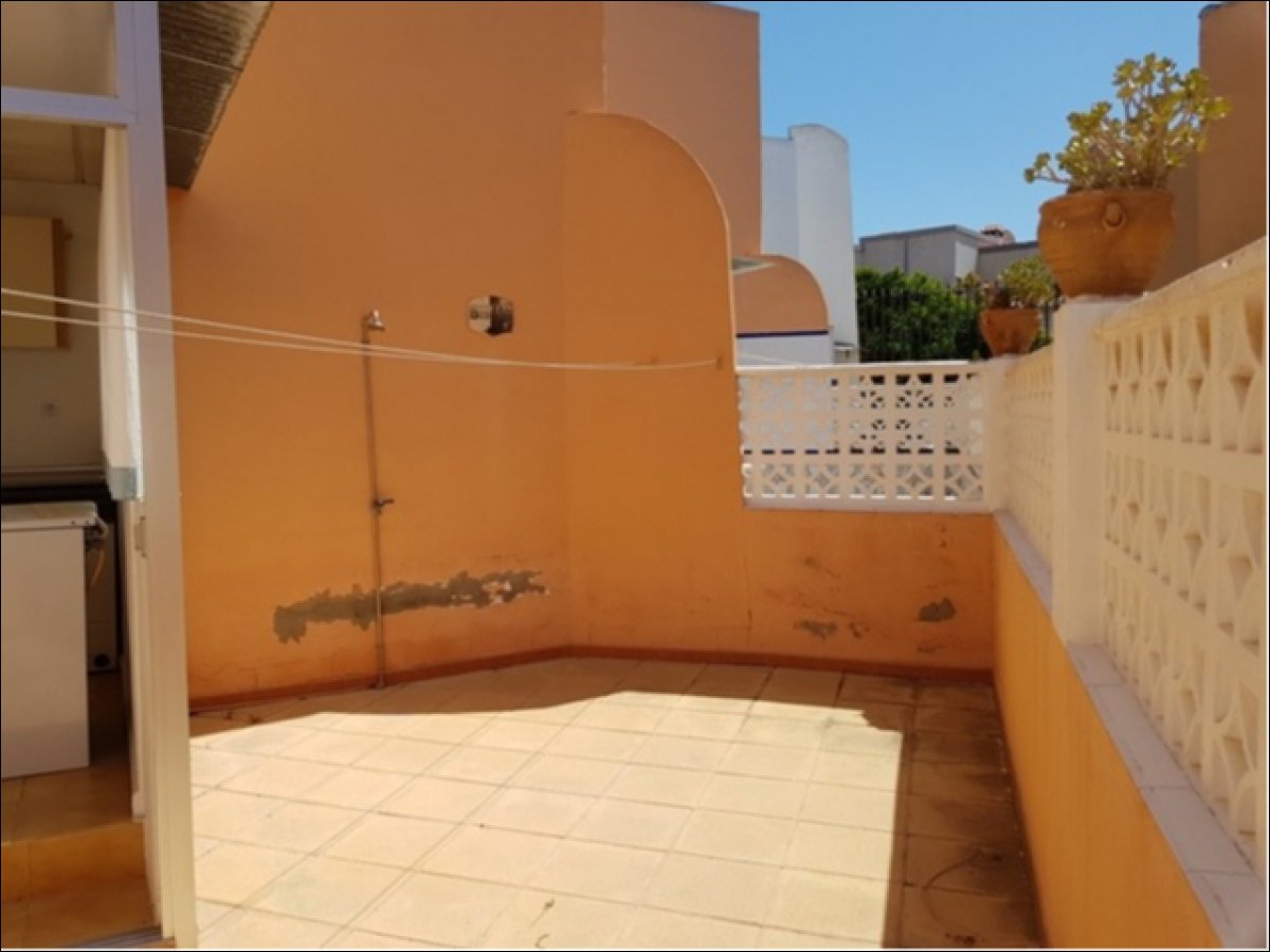 Dúplex adosado en Torrevieja zona Torreblanca, 80 m. de superficie, a 550 m de la playa (Cala Higuera) 3 dormitorios con armarios empotrados y ventiladores en el techo, 2 baños (uno de ellos en la planta baja), despensa en el hueco de las escalera, salón comedor con chimenea, amplia cocina americana equipada y galería, patio interior con ducha, orientación este, suelo de gres, carpintería exterior de aluminio / climalit.. Extras: terraza con barbacoa y jardín, muy luminoso, se entrega amueblado, balcón en la planta superior, garaje incluido.. Cerca a esta propiedad tienes, autobuses, restaurantes, colegios, playa, etc...
