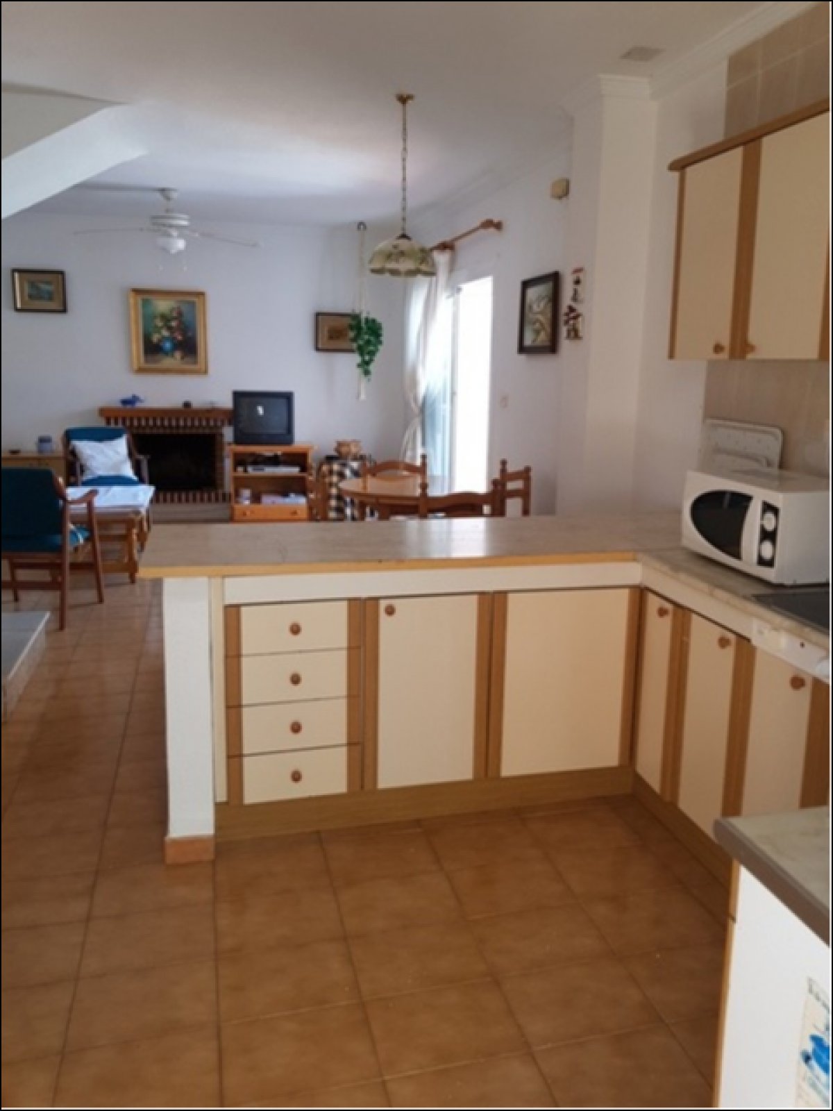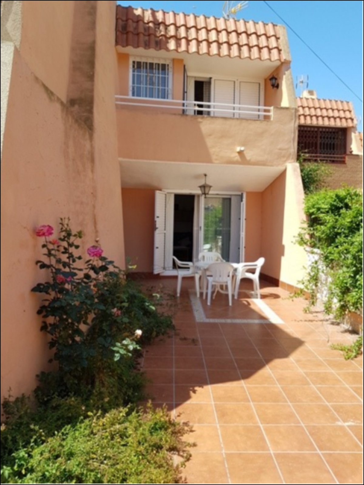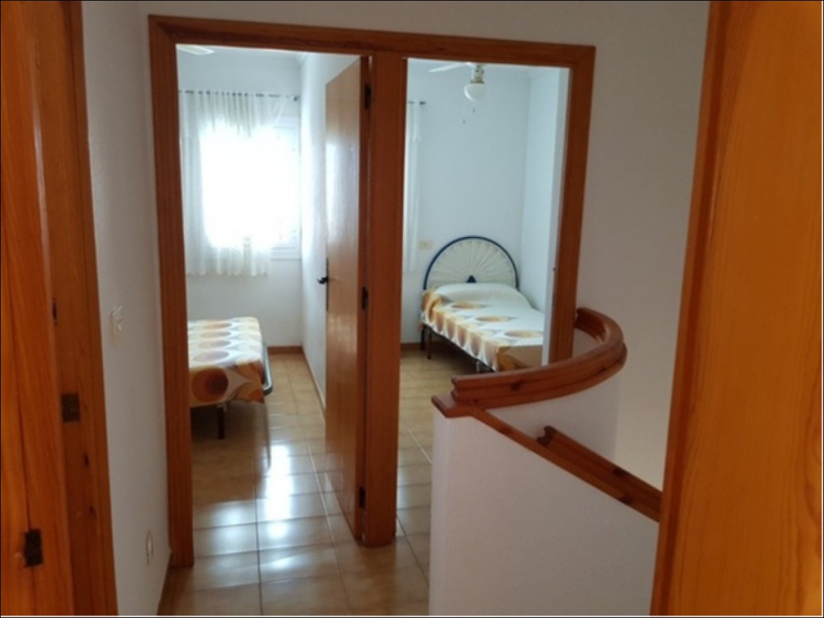 Dúplex adosado en Torrevieja zona Torreblanca, 80 m. de superficie, a 550 m de la playa (Cala Higuera) 3 dormitorios con armarios empotrados y ventiladores en el techo, 2 baños (uno de ellos en la planta baja), despensa en el hueco de las escalera, salón comedor con chimenea, amplia cocina americana equipada y galería, patio interior con ducha, orientación este, suelo de gres, carpintería exterior de aluminio / climalit.. Extras: terraza con barbacoa y jardín, muy luminoso, se entrega amueblado, balcón en la planta superior, garaje incluido.. Cerca a esta propiedad tienes, autobuses, restaurantes, colegios, playa, etc...