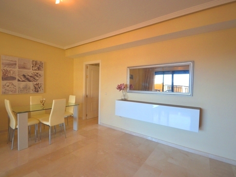 Se vende apartamento a ESTRENAR de dos dormitorios y dos baños completos. Cocina independiente amueblada y equipada (sólo falta el frigorífico), con lavadero. Salón de 36 metros con amplio ventanal y puerta de salida a terraza. Video vigilancia. Conserje 4 horas al día. Muy buenas calidades, aire acondicionado frio- calor, persianas eléctricas, cristal climalit, armarios revestidos con cajoneras. Muy luminoso y soleado. Panorámicas vistas al campo de golf y al mar.Garaje, trastero de 5 metros. 63 euros de comunidad. Pequeña piscina con vistas espectaculares al campo de golf. Situado ... Leer más