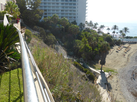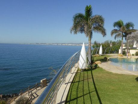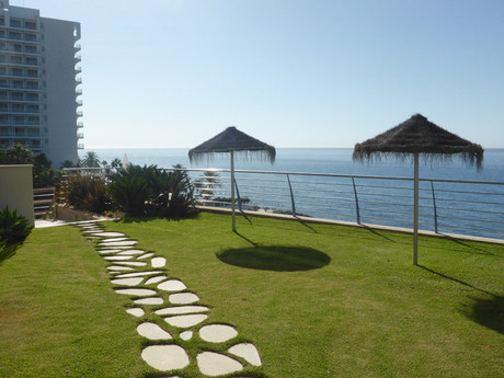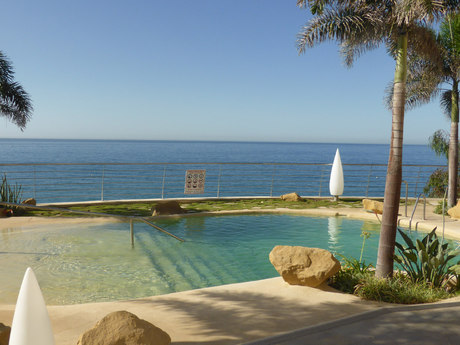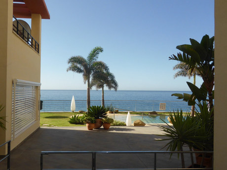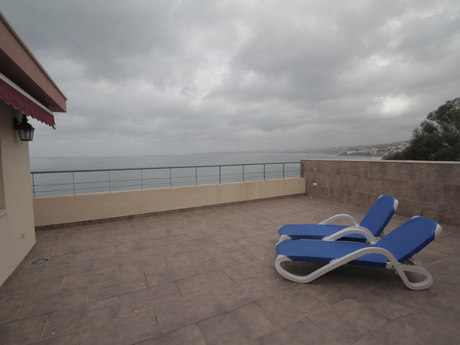 Fabuloso y encantador ático ubicado en primera de linea de playa, la vivienda inicialmente de 2 habitaciones dobles, posibilidad de ubicar otras habitaciones sin problemas, 2 baos completos el principal en suite, 2 salones, el principal de 35m2, amplia cocina independiente amueblada y equipada con todo tipo de electrodomésticos, terraza solarium de 60m2 con inmejorables vistas directas al mar, suelos de mármol en toda la vivienda, AA/CC, recinto privado con piscina y jardines comunitarios, salida directa a la playa, ubicado a escasos metros del casino, muy cerca de centro de salud, grandes superficies comerciales, colegio internacional y todo tipo de servicios disponibles.