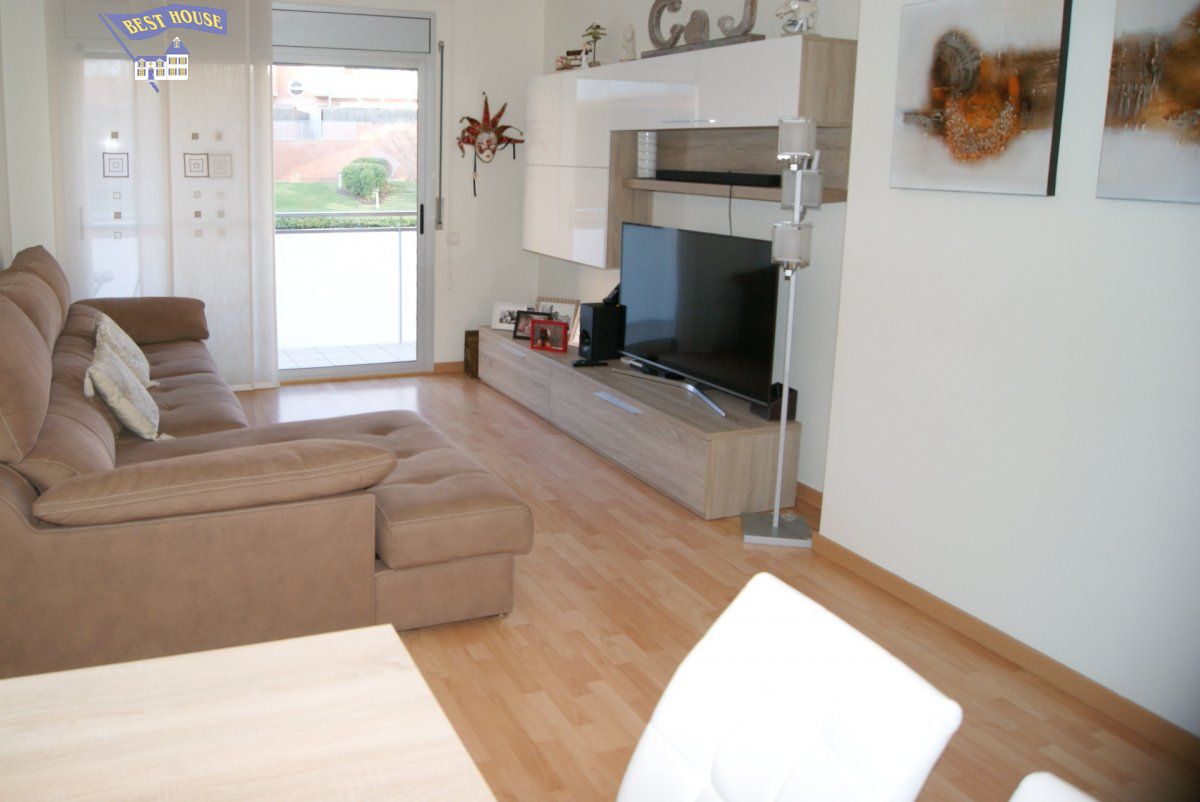 Estupendo piso seminuevo de 100 m2 construidos 87 m2 útiles, muy bien distribuidos consta de 3 hab, todas ellas dobles y dan al exterior de 10 m2 , 9 m2 y 14 m2 , 2 baños completos con bañera y otro media bañera, 1 cocina office de 12 m2 con salida a galería de 4 m2 , 1 amplio salón comedor de 22 m2 con salida al balcón de 6 m2 con vistas a zona comunitaria.. Los acabados son de primera calidad, suelos de parquet y gres en cocina y baños,ventanas de aluminio climalit, puertas de haya, calefacción de gas natural por radiadores, pre instalación de AA.CC , el inmueble se entrega totalmente amueblado e incluye parking grande y trastero de 4 m2.. Se encuentra en una de las mejores zona en Sant Jordi Park muy tranquila con zona comunitaria , piscina para el disfrute de los mas pequeños de la casa y con todos los servicios cerca, centros médicos, farmacias, restaurantes, gasolineras, tiendas comerciales, parques infantiles,etc y de muy buen acceso a la C-58 y AP-7.. Ven a verlo te va a encantar, te esperamos!!