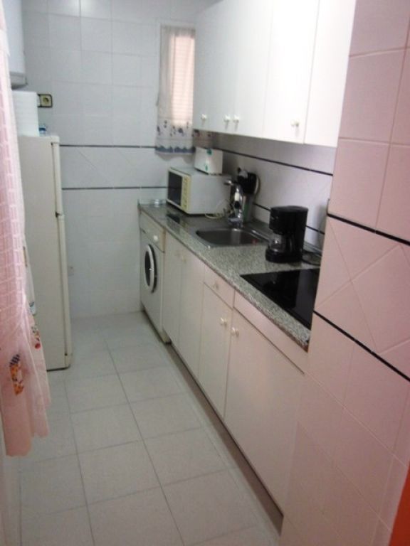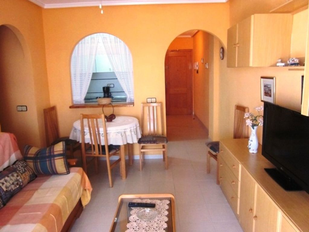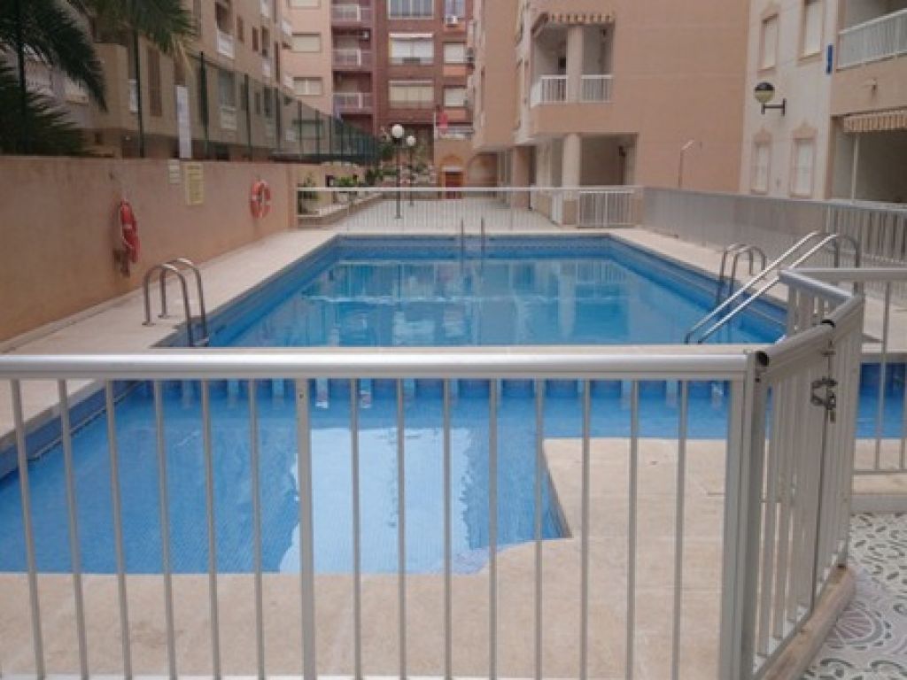 Piso en Torrevieja zona Acequion, 64 m. de superficie, a tan solo 350 m. de la playa, 2 dormitorios con armarios, 1 baño con ventana, cocina americana totalmente equipada y con ventana, salón comedor con salida directa a la terraza acristalada, aire acondicionado en el salón, vistas a la calle, luminoso, amueblado, vivienda preparada para entrar a vivir, suelo de gres, carpintería exterior de aluminio / climalit.. Extras: Garaje cerrado (opcional) no está incluido en el precio.. El edificio tiene la entrada con rampa, 2 ascensores, piscina comunitaria, a un paso de la playa, autobuses, centros médicos, colegios, etc.