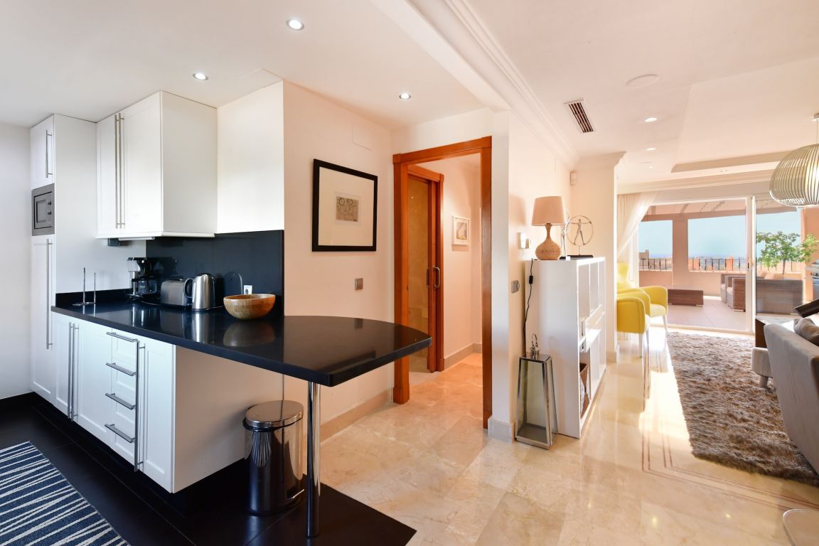 Excelente ático de dos dormitorios a la venta situado en el corazón de Nueva Andalucía en uno de los complejos más lujosos; Aloha Hill Club. Este complejo de alto estándar está rodeado de naturaleza, campos de golf y a sólo un corto trayecto en coche a todos los otros servicios como playa, escuelas, tiendas y restaurantes.. . El apartamento tiene un amplio y luminoso salón con chimenea que da a una gran terraza soleada con jacuzzi, vistas a la zona de la piscina, mar, África y Gibraltar. Adjunto a la terraza está el comedor separado con ventanas de cristal del suelo al techo. Una nue... Leer más