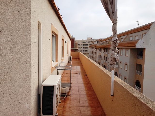 Precioso Ático en Torrevieja zona Centro, 125 m. de superficie, a 800 m. de la playa, amplia terraza en esquina con grandes vistas, 4 amplios dormitorios con armarios empotrados, 2 baños, salón comedor, cocina independiente con ventana y totalmente equipada, orientación sur, garaje incluido en el mismo edificio, propiedad en buen estado, suelo de gres, carpintería exterior de aluminio / climalit.. Muy luminoso, amueblado, aire acondicionado (bomba frío/calor) edificio con 2 ascensores y rampa para minusválidos, a un paso del centro y a su alrededor se encuentran todos los servicios (autobuses, comerciales, centros médicos, colegios, zonas infantiles, etc.)
