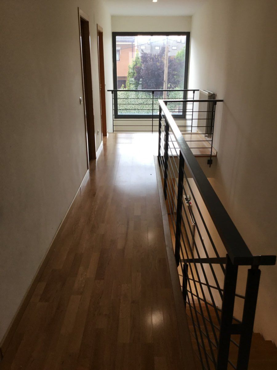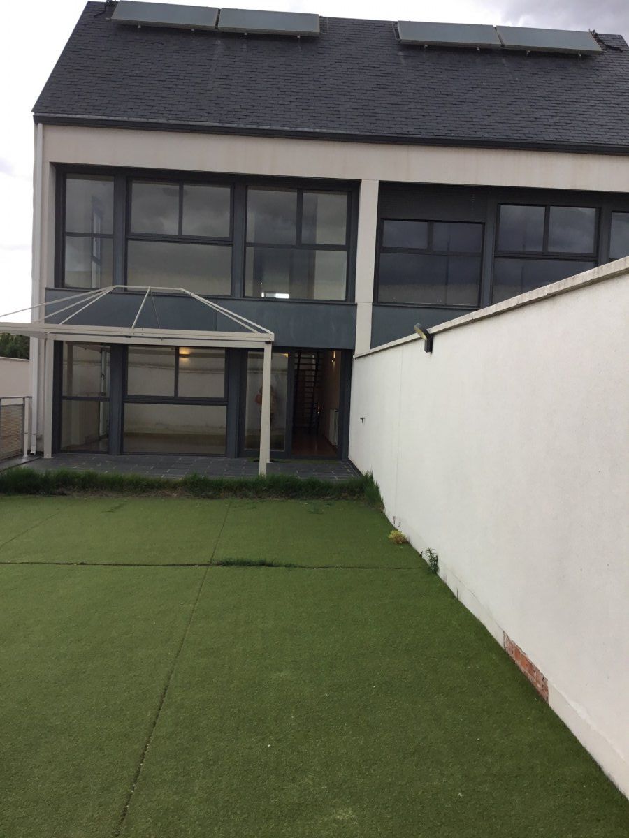 Chalet pareado de 4 habitaciones y 3 baños, en tres plantas con parcela de 450 metros.. planta baja: hall de entrada de 19 metroscon armario empotrado, habitaciones de 11 metros con armario empotrado, baño completo con ducha de 5.50 metros, cocina amueblada y equipada de 12 metros y tendedero de 4 metros, equipada con horno, vitrocerámica, campana, lavavajillas, lavadora y nevera, salón comedor amplio con ventanal grande muy luminoso de 29 metros. terraza delantera de 60 metros y jardín trasero de 135 metros.. planta primera:dormitorio principal en suite de 26 metros con armario empotrado y baño de 5.50 metros completo, dormitorio de 12 metros con armario empotrado, baño completo de 5.50 metros, dormitorio de 12 metros con armario empotrado, distribuidor de 10 metros.. planta sótano: garaje de 80 metros.. Suelos de tarima, calefacción y agua caliente por gas natural, preinstalación aire acondicionado, muy luminoso, autobuses, colegios, centro de salud, cercano a salida de la nacional II, cercano a centro comercial Plenilunio.. Un mes de fianza y mes de comisión de agencia..