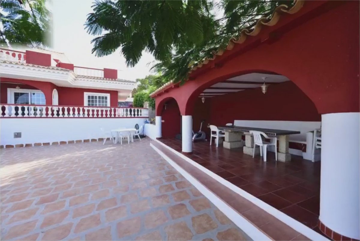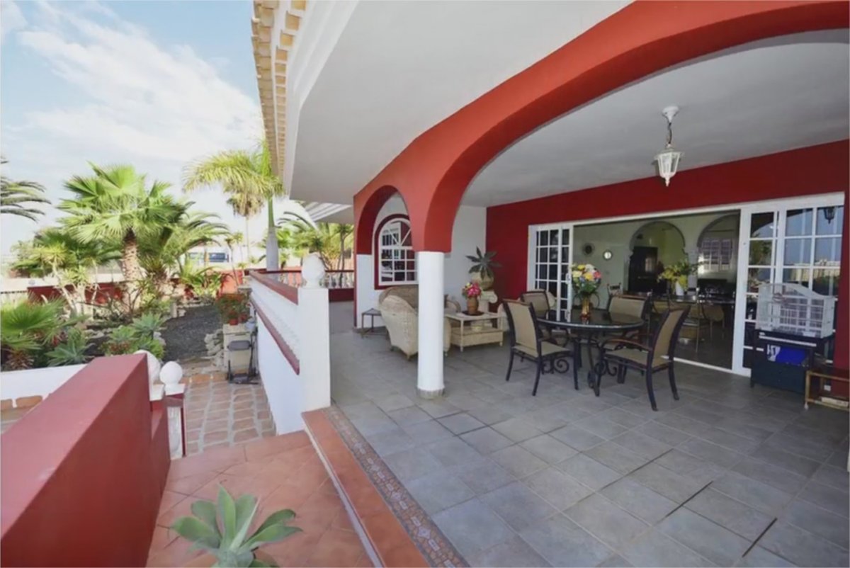 Espectacular villa de lujo con muy bonitas vistas al mar, La Gomera y el Teide. Esta mansión está ubicada en el mejor sitio de Playa Paraíso, a 800 metros del mar y a escasos metros de restaurantes, bares, supermercados, parada de autobuses… Su ubicación es excepcional siendo una esquina sin vecinos alrededor, ya que son 3 calles cortadas sin ningún tráfico ni ruido, lo que garantiza una total tranquilidad. . . La parcela mide 1,260 m2 y la casa más de 300m2 construidos. Hay una piscina de 50m2 con cascada y jacuzzi. En frente a ésta, hay un patio cubierto de tejas con una mesa de ca... Leer más