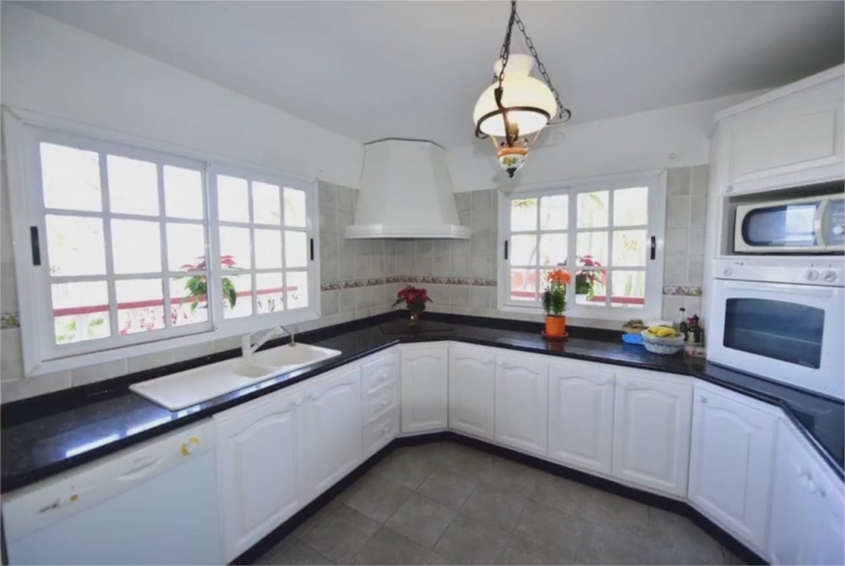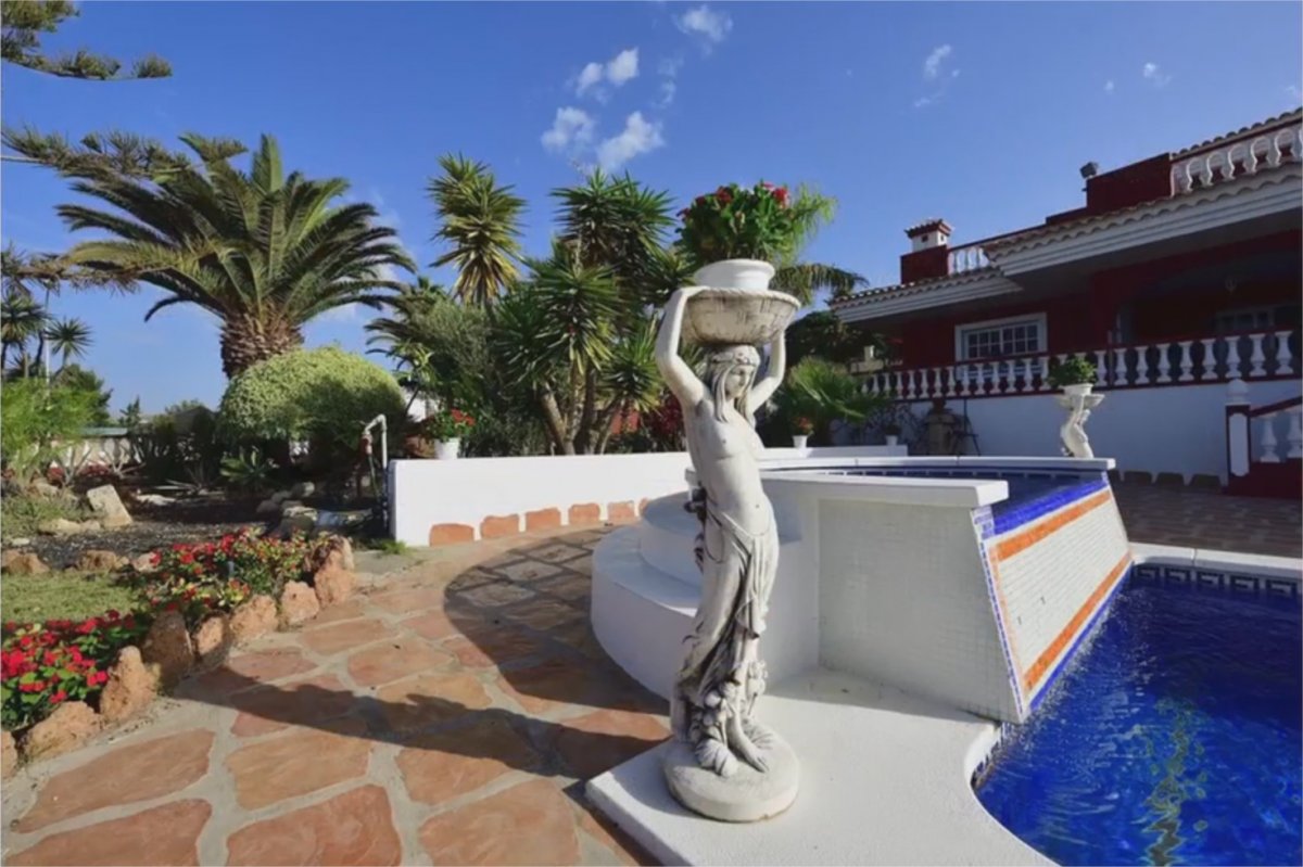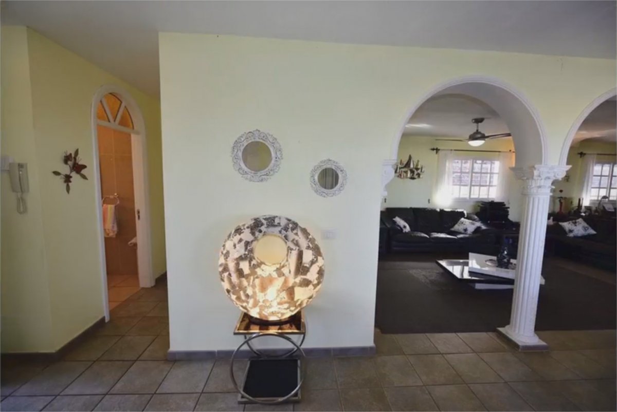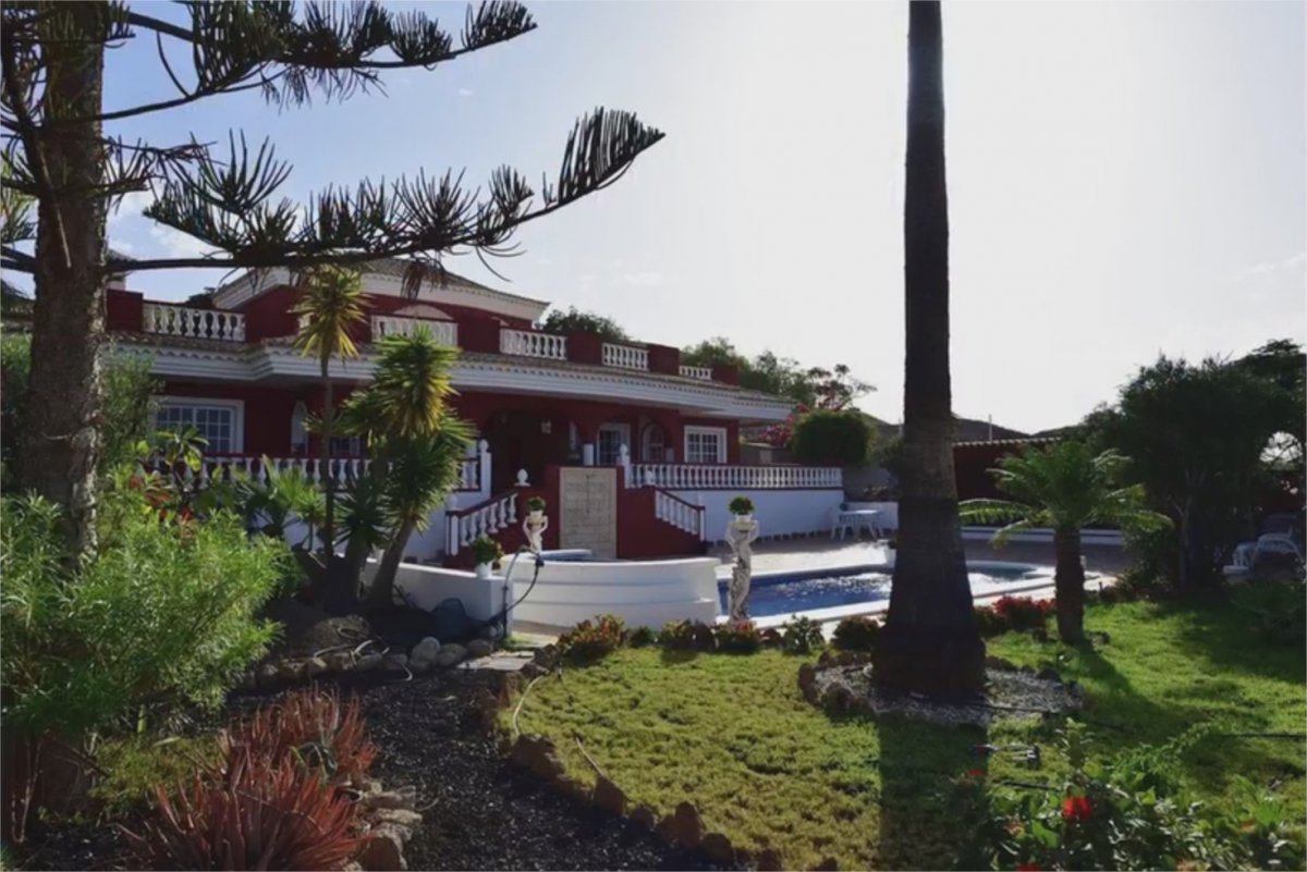Espectacular villa de lujo con muy bonitas vistas al mar, La Gomera y el Teide. Esta mansión está ubicada en el mejor sitio de Playa Paraíso, a 800 metros del mar y a escasos metros de restaurantes, bares, supermercados, parada de autobuses… Su ubicación es excepcional siendo una esquina sin vecinos alrededor, ya que son 3 calles cortadas sin ningún tráfico ni ruido, lo que garantiza una total tranquilidad. . . La parcela mide 1,260 m2 y la casa más de 300m2 construidos. Hay una piscina de 50m2 con cascada y jacuzzi. En frente a ésta, hay un patio cubierto de tejas con una mesa de canto y azulejos con capacidad para 12 personas y 2 barbacoas, una a carbón y otra a gas. Bajo éste mismo patio, hay un rincón deportivo con cinta de correr y una bicicleta fija. Pegado a la piscina, un jardín de más de 400m2 con palmeras, una gran variedad de plantas exóticas y también un rincón con cactus de diversos orígenes. El garaje tiene capacidad para 4 coches y 2 ó 3 en la bajada de acceso al mismo. . . La planta baja tiene 2 dormitorios con baños en suite que constan de bañera y jacuzzi; después de un pasillo hay una habitación reformada en oficina siendo parte de un enorme salón-comedor y cocina estilo americana, todo esto en la misma planta lo que ofrece un ambiente especial, confortable y muy práctico. Este salón también tiene una puerta corredera de más de 4 metros que da acceso a una terraza cubierta con una mesa de mármol donde se puede comer y disfrutar durante todo el año sin viento ni calor. Al lado hay un rincón con sofás para tomar un cafecito mirando hacia la piscina y el mar - un sueño- ya que todo ha sido estudiado para disfrutar de una villa perfecta en todos los sentidos. . . En la planta alta hay una habitación como una suite real con un baño completo, más una oficina muy bonita y práctica. También, hay una terraza de más de 100m2 con unas vistas estupendas al mar y la isla de La Gomera que, cuando el cielo está claro, se puede llegar a ver hasta La Palma y el Hierro. . . Por si acaso fuese necesario, hay espacio para construir 2 dormitorios más y dos baños en suite.. . Ven a verla y enamórate.. . Ubicación: En el mejor bario residencial de Playa Paraiso . Superficie Terreno : 1250 m2 . Superficie casa : 300 m2 . 4 Dormitorios de buen tamaño,3 con baño en suite (2 con bañera grande) . 1 Habitacion adicional amueblada con uso de oficina. Salon + comedor + cocina americana abierta + solana + oficina profesional en la sala de estar de 100 m2 . Mas un baño con ducha para invitados. . Terraza cubierta ubicada al nivel de la sala de estar con mesa y rincon con sofas, de una superficia de 35 m2 con vistas panoramicas. . Nota importante: a parte una habitacion con baño en suite y oficina grande tipo suite real ubicados en planta alta, todo lo demas de la casa se ubica en planta baja. . Garage interno semi sotano para 4 vehiculos mas espacio para 3 coches mas en la bajada con puertas automaticas. . Fibra optica, antena parabolica, alarma con toma de fotos, aire acondicionado en la sala de estar. . Pisina de gresite: 50 m2 con jacuzzi y cascada. . Jardines: 400 m2 . Terrazas nivel casa y piscina: +/- 230 m2 . Terraza en la planta alta: 100 m2 con vistas al mar,la gomera de 180º y montaña de 180º.. . Precio de venta: 1.390.000 euros (impuestos, gastos notariales y de registro no incluidos en el precio).