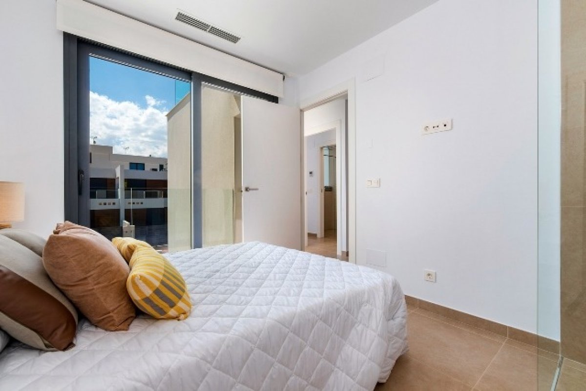 Chalet en Benijofar zona Benimar, 113 m. de superficie, 166 m. superficie parcela, 29 m2 de cocina, 3 m2 de terraza (3 M2 plta 1 + 3 M2 Plta 2), 6 m. de la playa (KMS), 3 habitaciones dobles, 3 baños, propiedad en obra nueva, cocina sólo muebles, carpinteria interior de lacado blanco, orientación este, suelo de cerámico, carpintería exterior de aluminio / climalit.. Extras: armarios empotrados, luminoso, ojos de buey, preinst. aacc, puerta blindada, solárium (opcional), terraza, trastero, videoportero, parking incluído.. cerca a esta propiedad tienes, autobuses, árboles, centros comerciales, centros médicos, colegios, urbanización, vistas despejadas, zonas infantiles.