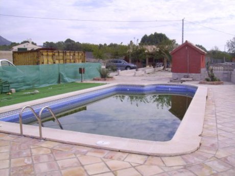 Casa de campo de 100 m2 todo en planta baja + 50 m2 de porche y 30 m2 de barbacoa y lavadero. Consta de 3 dormitorios, 2 baños, salón con chimenea, cocina, lavadero, barbacoa, porche, jardines, almacén de 30 m2 para la depuradora y piscina de 10 x 5 ml con jacuzzi en las escaleras de entrada. Enclavada sobre parcela de 5.000 m2 a tan sólo 1'5 km de Calasparra en un sitio inmejorable con vistas a la montaña, el campo y al pueblo.. La casa dispone de puertas en madera de roble, suelos de gres rústico, depósito de agua de 300 L, aparato de aire acondicionado con bomba de calor en el salón-comedor y en 2 de los dormitorios, chimenea cerrada con expulsión de calor por conductos, mosquiteras en todas las ventanas, horno de leña, etc.. La casa está totalmente legalizada.. . // Distancia pueblo: 1'5 Kms.. Distancia estación tren: 7 kms.. Distancia playa: 120 kms..