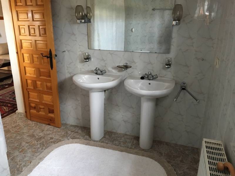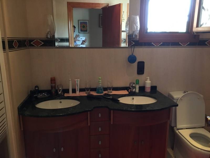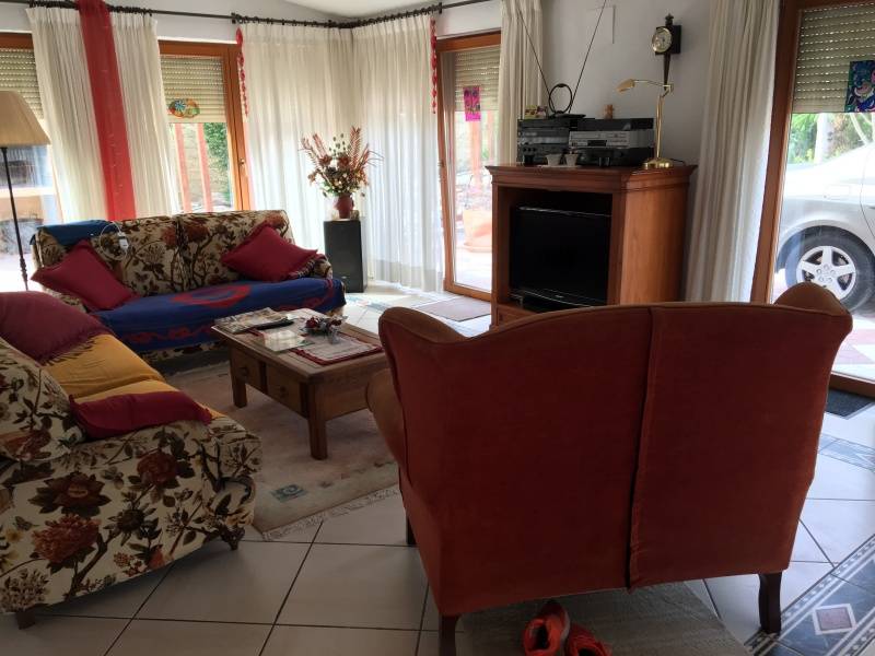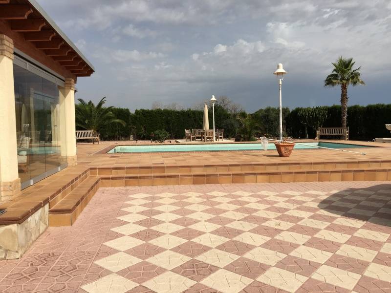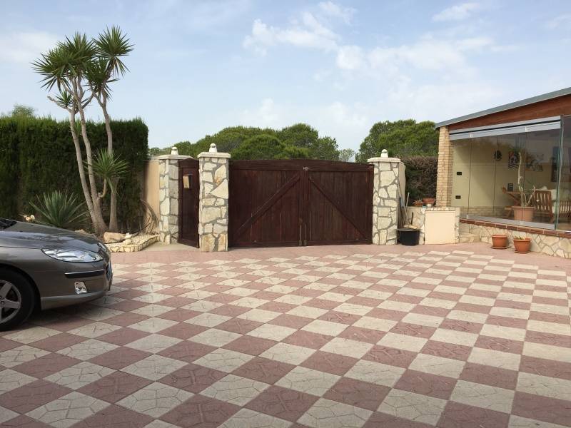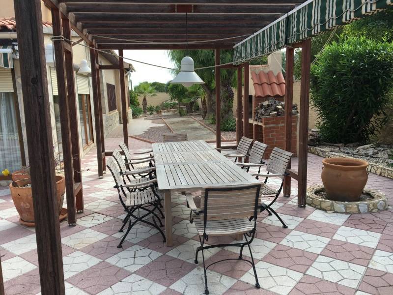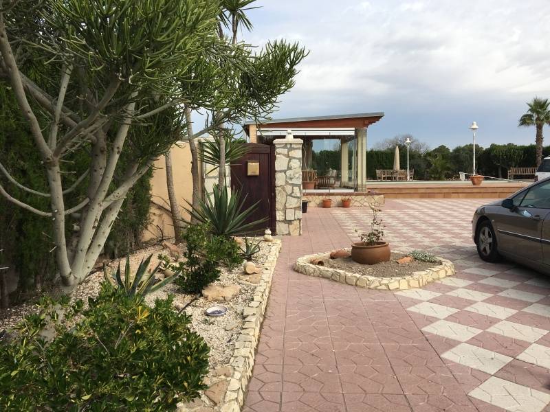 En la Partida de Torrellano Alto y muy cerca de Perleta y El Altet se ubica este excelente chalet costruido sobre una parcela urbana de 2500m2 de superficie y junto a un entorno natural protegido.. La vivienda fue reformada hace unos 10 años y tiene 400m2 divididos en dos plantas, con la caracteristica de que la planta de arriba la podemos utilizar como vivienda de invitados o alojar alli a oto familiar que queramos que este con nosotros pero independiente ya que tiene un acceso por fuera de la casa.. La planta principal se distribuye en 5 dormitorios, dos salones (uno con chimenea y junto a la cocina), dos baños, cocina, cuarto de lavado y galeria, despensa, oficce, y terraza preparada para poder cerrarla.. La planta superior se puede decir que es otra vivienda, tiene una gran habitacion convertible en dos estancias, salon, y un generoso baño completo.. El exterior es una verdadera delicia, con un cuidado excelente y muy versatil, encontramos una terraza cubierta y acristalada con toma de TV. incluida y amueblada para pasar alli las noches de verano o invierno, junto a ella se encuentra una magnifica piscina de 5x15m2 climatizada por energia solar y autolimpiable con todo su perimetro solado con gres estilo rustico, sus cuidado jardines y rocallas le dan un aspecto mas que notable, junto a la casa encontramos tambien una pergola cenador de madera junto a la correspondiente barbacoa para nuestras reuniones o celebraciones familiares o con amigos.. Tiene dos costrucciones mas, una como garage y otra donde se encuentra la caldera por gasoil y el descalcificador, ademas de almacen para guardar otros enseres o juegos como futbolin etc.... La parcela es urbana por lo que dispone de agua y luz de la red, tiene tambien instaladas 8 placas solares en el tejado para el agua caliente.. Todo ello recogido por una elegante valla perimetral de bloque split visto y un zocalo de piedra ademas de estar en su perimetro rodeada de cipreses.. La vivienda se entrega practicamente amueblada salvo algunos elementos.. En definitiva, es una vivienda con todo lo necesario para conseguir en ella una calidad de vida extraordinaria para nosotros y nuestros familiares , propiedad totalmente legalizada, muy bien acondicionada, de buenas dimensiones, versatil, automatizada, a 10 minutos de la playa y de todas las poblaciones cercanas, etc.... ¡¡ LLAMENOS PARA AMPLIAR INFORMACION !!. . .