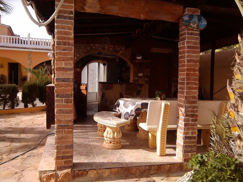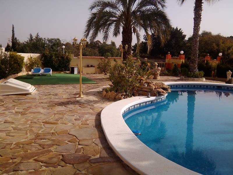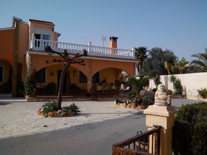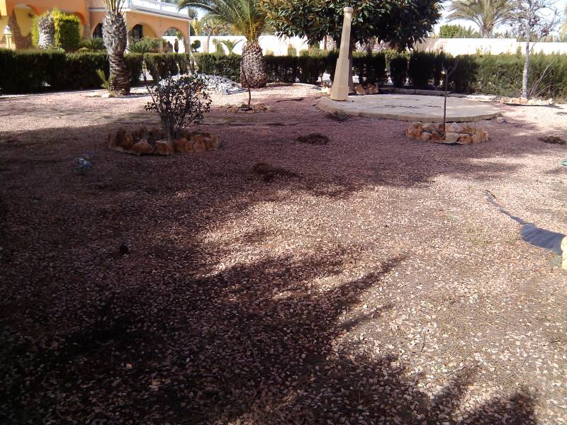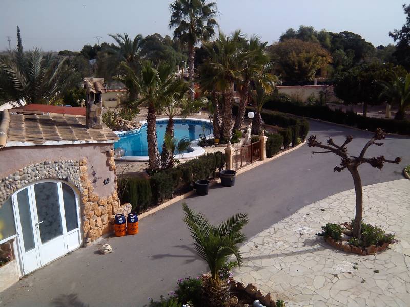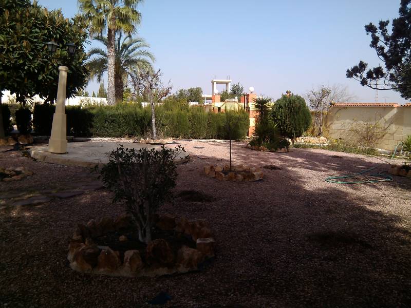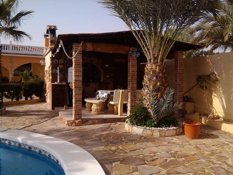 Chalet en Elche zona Valverde con 2500 m2 de parcela toda vallada con puerta automática, un jardín muy bien cuidado, pozo de riego, piscina privada y aseo con ducha, zona de descanso con cenador y barbacoa, aparcamiento cubierto para varios coches, local para almacén y una porchada que rodea toda la casa.. . Con 240 m2 construidos en dos alturas nos encontramos en la planta baja con 3 habitaciones, 2 baños, un salón comedor con chimenea, cocina amplia con comedor y chimenea.. En la primera planta una buhardilla con un salón y 3 habitaciones con dos de ellas con salida a la terraza.. . Está ubicado en una urbanización con vecinos todo el año, con todos los servicios cerca, colegios, farmacia, a 4 kms de la playa de Santa Pola y Arenales del sol, 6 kms de Elche y 7 kms del aeropuerto.. . ¡¡SI QUIERES VIVIR EN PAZ, ARMONÍA Y COMODIDADES...NO LO DUDES, VEN A VERLO!!