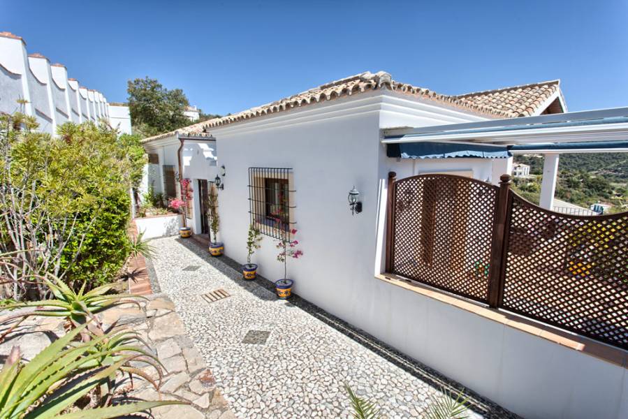 Villa Los Alcornoque. Monte Mayor, Benahavis. . Muy bien situado villa clásica de calidad con preciosas vistas al Mediterráneo y las montañas. Muy tranquila y privada, al sur con orientación este. Planta principal: Salón comedor con chimenea y acceso directo a la terraza, comedor, cocina totalmente equipada, oficina y un dormitorio para invitados. Las plantas inferiores - el nivel de jardín: dormitorio principal en suite y dos dormitorios de invitados. zona de ocio con posibilidad de un dormitorio adicional. Doble garaje. Jardín privado con piscina climatizada. A sólo 15 minutos de todos los servicios, la playa y los pueblos de San Pedro y Estepona.. . Villa Los Alcornoque. Monte Mayor, Benahavis. . Nicely located classic quality villa with beautiful views to the Mediterranean and the mountains. Very quiet and private, south to east facing. Main floor: Living area with fireplace and direct access to the terrace, dining area, fully fitted kitchen, office and one guest bedroom suite. Lower floors - garden level: Master bedroom suite and two guest bedrooms suite. Entertainment area with possibility to an extra bedroom. Double garage. Private garden with heated pool. Only 15 minutes to all amenities, the beach and the villages of San Pedro and Estepona.. . . .