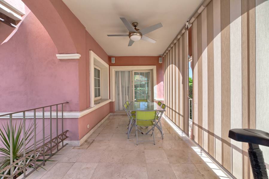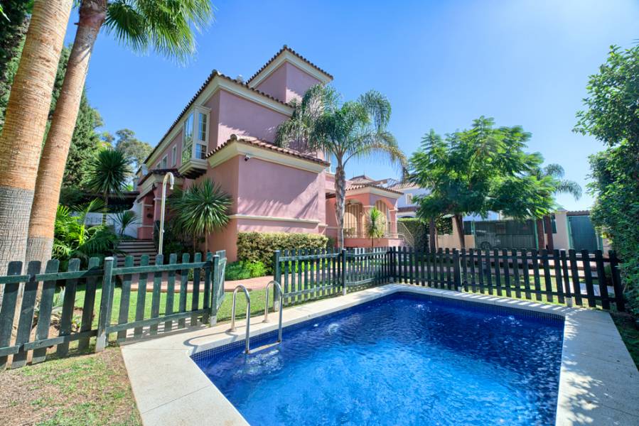 ALQULER VACACIONAL MÍNIMO 2 SEMANAS. Urb. Lorea Playa, Puerto Banus, Marbella Ubicación superior. Villa pareada amplia la calidad frente a la playa segunda línea. Sur de orientación oeste. De construcción 2005. Planta principal: Salón / comedor con chimenea, cocina totalmente equipada con zona de desayuno, un dormitorio de invitados con baño separado. Terrazas, jardín y piscina privada climatizada. Cochera para un auto. Primera planta: dormitorio principal y dos dormitorios que comparten un baño. Planta alta: azotea con zona de barbacoa. planta baja (sótano): Segunda zona de estar, dormitorio de invitados, cuarto de baño, área de lavado. Frente a la playa, a poca distancia de San Pedro y Puerto Banús. . Urb. Lorea Playa, Puerto Banus, Marbella Top location. Semi detached spacious quality villa second line beachfront. South to west facing. Built 2005. Main floor: Living/dining area with fireplace, fully fitted kitchen with breakfast area, one guest bedroom with separate bathroom. Terraces, garden and private heated pool. Carport for one car. First floor: Master bedroom suite and two guest bedrooms sharing one bathroom. Topfloor: Roof terrace with BBQ area. Lower floor (basement): Second living area, guest bedroom, bathroom, laundry area. Beachfront, walking distance to San Pedro and Puerto Banus