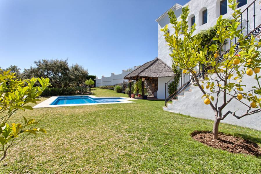 Villa Los Alcornoque. Monte Mayor, Benahavis. . Muy bien situado villa clásica de calidad con preciosas vistas al Mediterráneo y las montañas. Muy tranquila y privada, al sur con orientación este. Planta principal: Salón comedor con chimenea y acceso directo a la terraza, comedor, cocina totalmente equipada, oficina y un dormitorio para invitados. Las plantas inferiores - el nivel de jardín: dormitorio principal en suite y dos dormitorios de invitados. zona de ocio con posibilidad de un dormitorio adicional. Doble garaje. Jardín privado con piscina climatizada. A sólo 15 minutos de todos los servicios, la playa y los pueblos de San Pedro y Estepona.. . Villa Los Alcornoque. Monte Mayor, Benahavis. . Nicely located classic quality villa with beautiful views to the Mediterranean and the mountains. Very quiet and private, south to east facing. Main floor: Living area with fireplace and direct access to the terrace, dining area, fully fitted kitchen, office and one guest bedroom suite. Lower floors - garden level: Master bedroom suite and two guest bedrooms suite. Entertainment area with possibility to an extra bedroom. Double garage. Private garden with heated pool. Only 15 minutes to all amenities, the beach and the villages of San Pedro and Estepona.. . . .