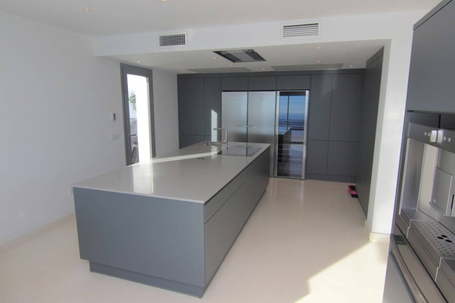 Villa de nueva construcción contemporánea de calidad, orientada al sur con espectaculares vistas panorámicas a la costa y el Mediterráneo. Planta baja: comedor, cocina americana totalmente equipada con zona de desayuno, aseo y dormitorio principal. El acceso desde el salón a la terraza y una piscina privada climatizada. Planta superior: dos habitaciones y dos baños, oficina. Azotea. Planta baja: un dormitorio de invitados y baño, garaje para 2 coches y sala de máquinas. Situado en Residencial Valtocado, a sólo unos minutos de Mijas Pueblo. Aprox. 10 a 15 minutos de la costa y la playa.. . Urb. Valtocado, Mijas. . New built contemporary quality villa, south facing with spectacular panoramic views to the coast and the Mediterranean. Main floor: Living/dining, fully fitted open kitchen with breakfast corner, guest toilet and master bedroom suite. Access from the living area to the terrace and a private heated pool. Upper floor: Two guest bedrooms and two bathrooms, office. Roof terrace. Lower floor: One guest bedroom and bathroom, garage for 2 cars and technical room. Located in residencial Valtocado, only a few minutes to Mijas Pueblo. Appr. 10 to 15 minutes to the coast and the beach.
