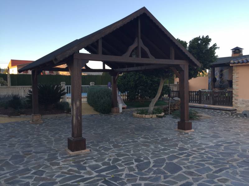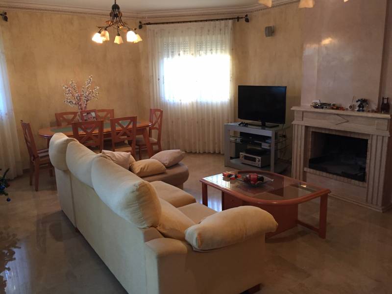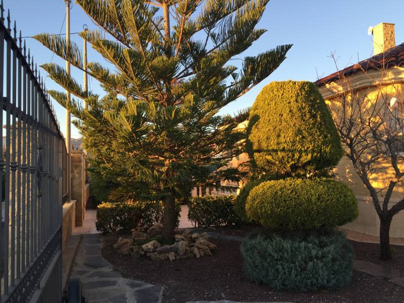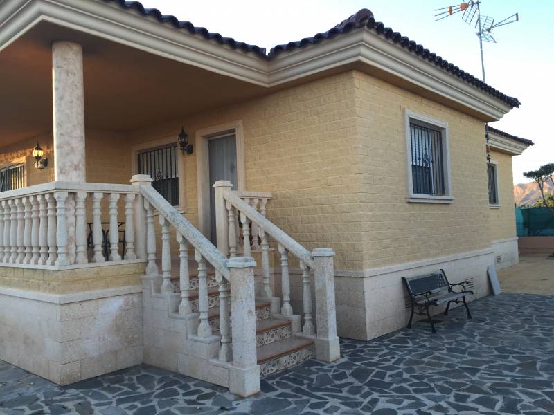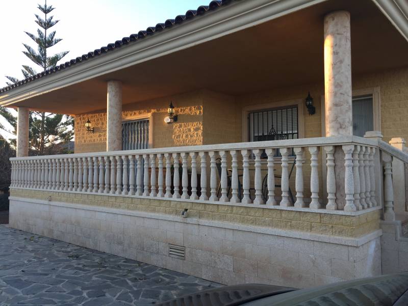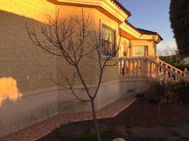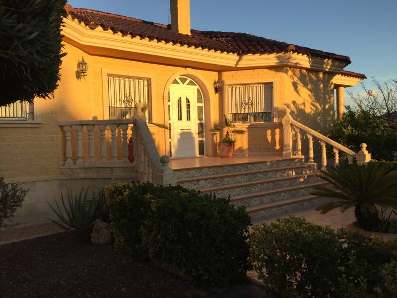 A 5 km de Orihuela, en la zona de Los Desamparados, se encuentra este magnifico chalet construido en 2003 de 220m2 construidos en una parcela urbana de 1050m2 rodeada de vecinos todo el año. Se distribuye en 4 habitaciones y 3 baños,( uno de ellos con jacuzzi ), con una gran cocina con galeria, un salón comedor con chimenea y una terraza de unos 25 m2, todo ello en una sola planta, la cubierta esta hecha de teja árabe con múltiples aguas dándole un aspecto de diseño notable.. En el exterior encontramos una piscina vallada con balaustrada, unos jardines muy bien decorados y de fácil mantenimiento, un cenador de madera junto a una gran barbacoa para todo tipo de fiestas familiares y un garaje cubierto y cerrado para tres vehículos, todo ello recogido por una valla perimetral de hierro forjado.. Cuenta con numerosos armarios empotrados, alarma, calefacción, pavimentos de mármol, carpintería maciza, aluminio exterior lacado con cristales climalit, etc... todo ello como nuevo y en perfecto estado de conservación. . *La propiedad se vende sin muebles aunque son opcionales y negociables si son de su agrado.. ¡¡ PROPIEDAD DESTACABLE, SOLO APTA PARA PERSONAS QUE BUSCAN CALIDAD DE VIDA!!