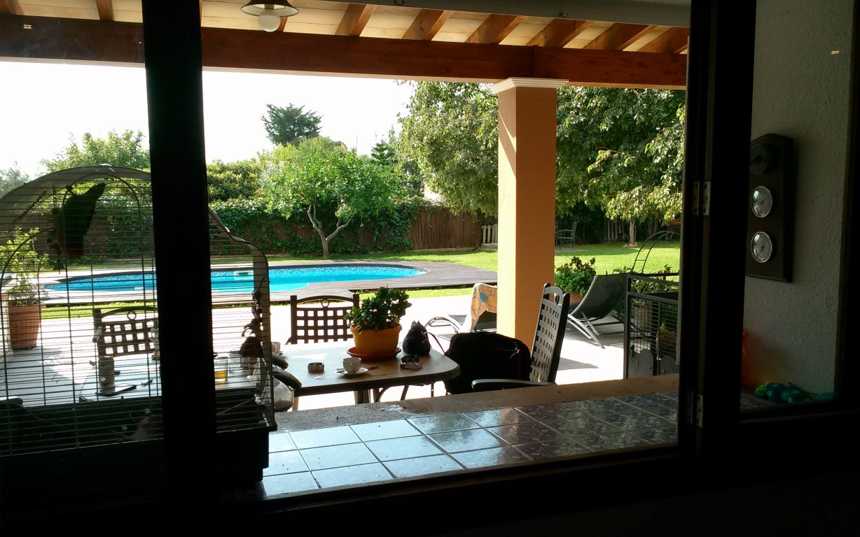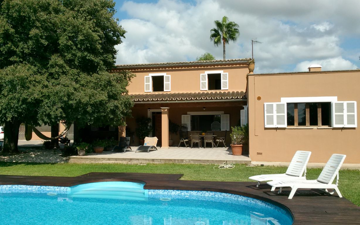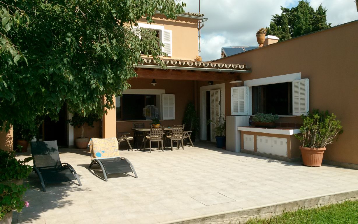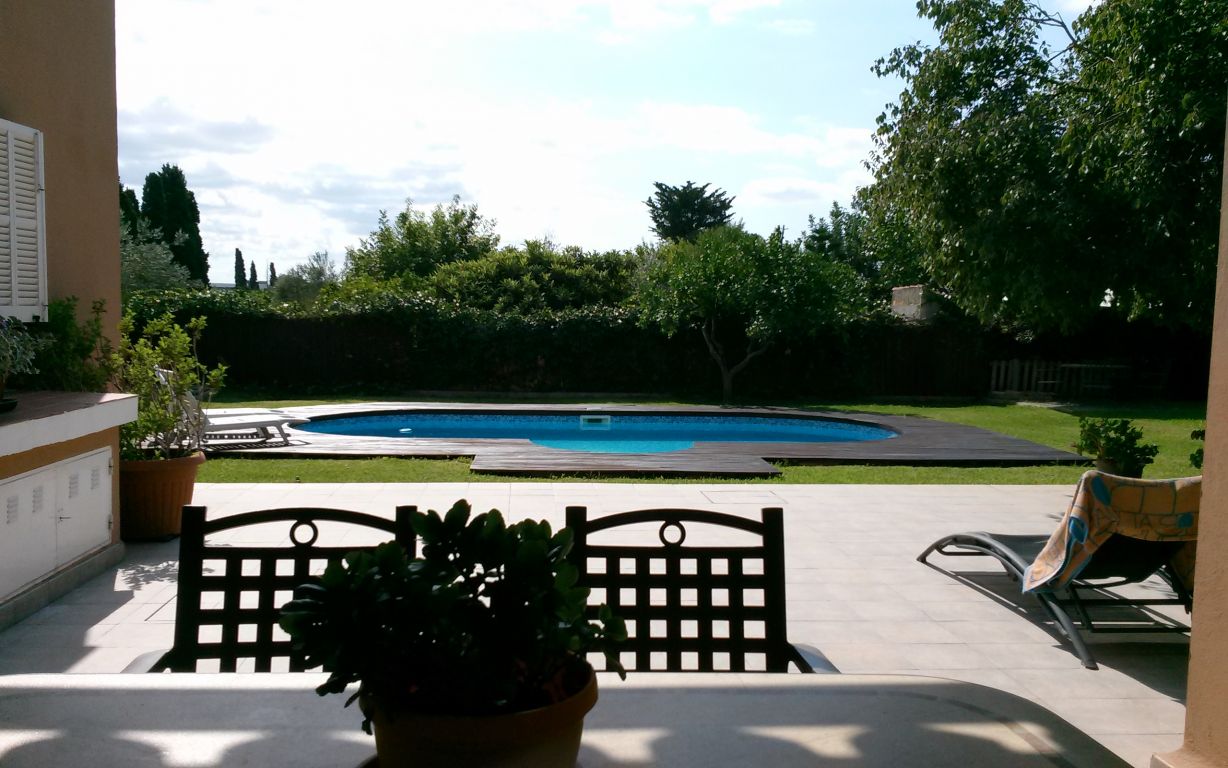 Esta maravillosa casa está situada en Son Sardina, a tan solo cinco minutos de Palma.. Está construida sobre un terreno de 1.760 metros cuadrados, rodeada de un precioso jardín mediterráneo con piscina. Tiene dos plantas y 343 metros cuadrados construidos en total. La planta baja consta de: Cocina-comedor amueblada y totalmente equipada, salón, una habitación, un baño, despensa, una gran sala ideal para construir un gimnasio, apartamento invitados, estudio, etc..., terraza con un porche, jardín, piscina, barbacoa, horno de leña. Planta primera: cuatro habitaciones una de ellas con baño en suite, vestidor y balcón, un baño completo, terraza.. . Dispone de calefacción en toda la casa, aire acondicionado en salón y dormitorio principal, carpintería exterior de madera, suelos de gres, pozo propio de agua, placas solares y caldera de gas propano.. Muy buena comunicación a la ciudad en metro, tren o bus..
