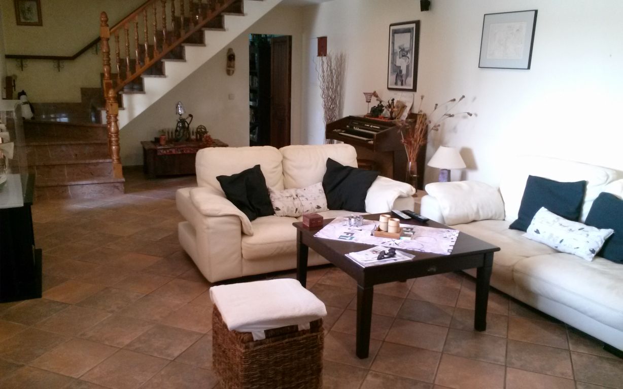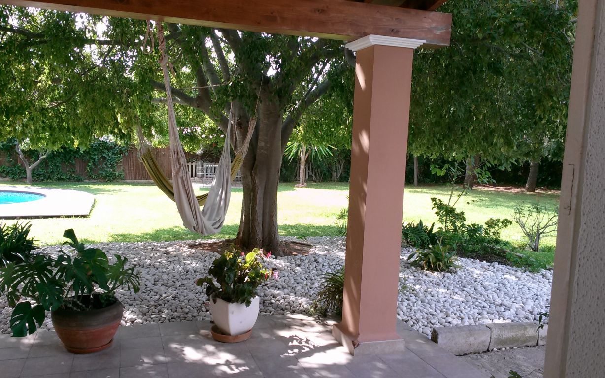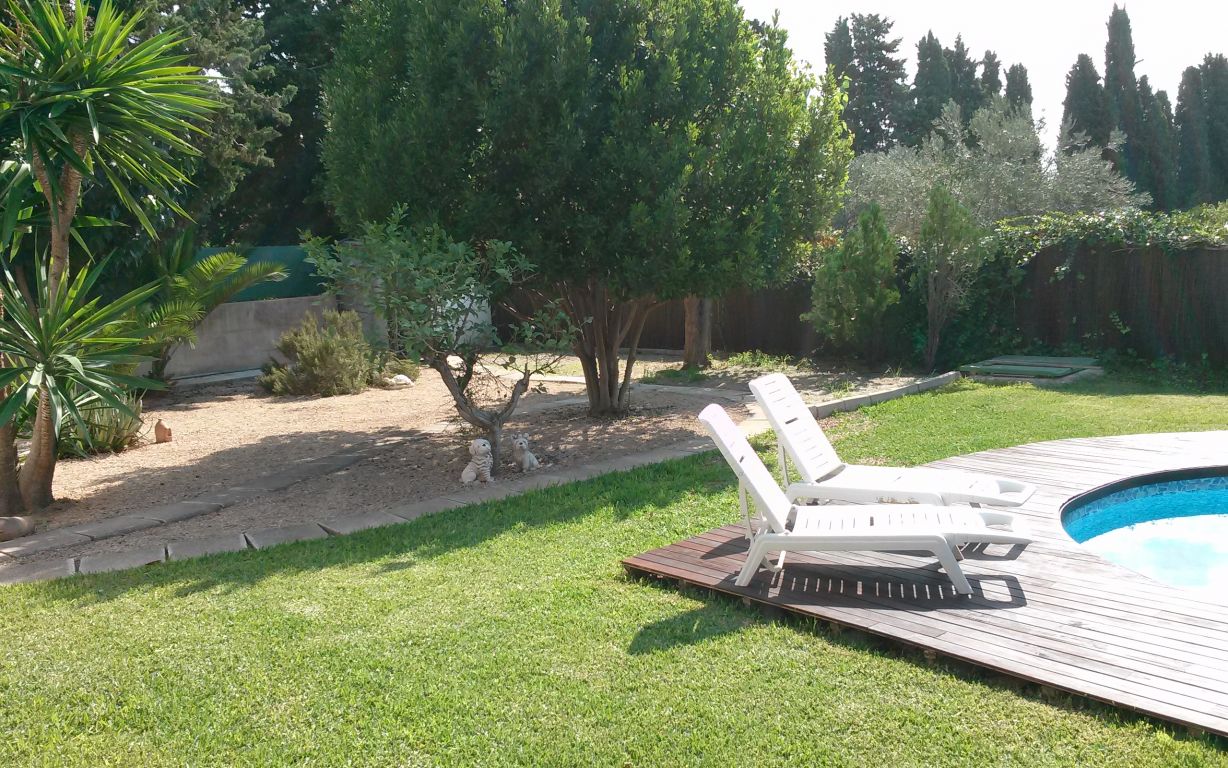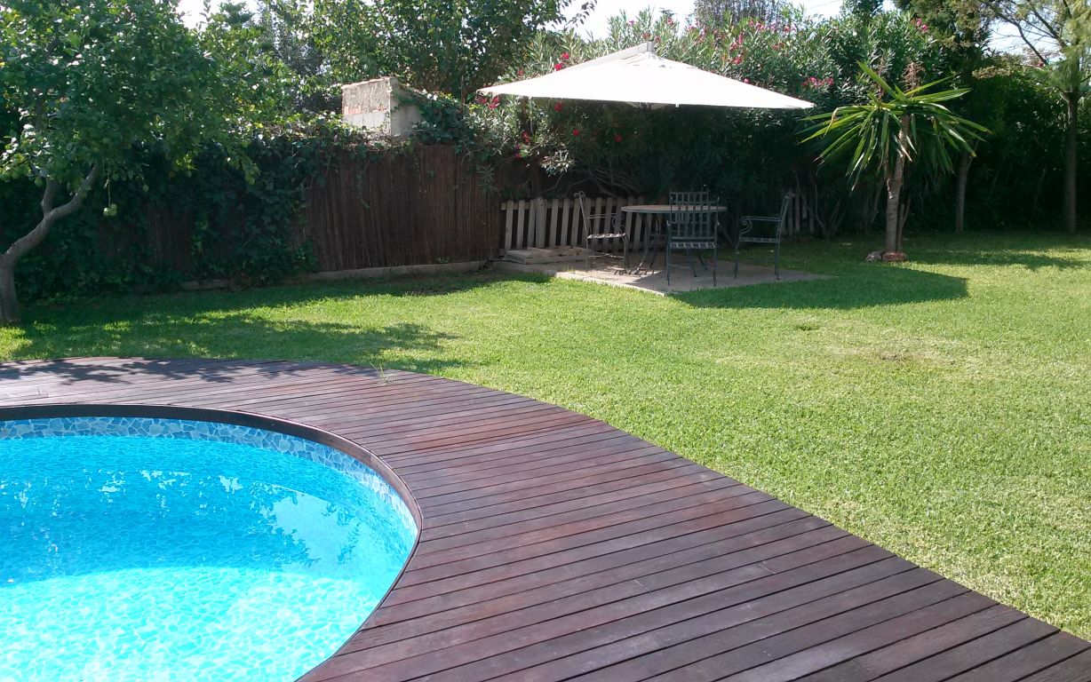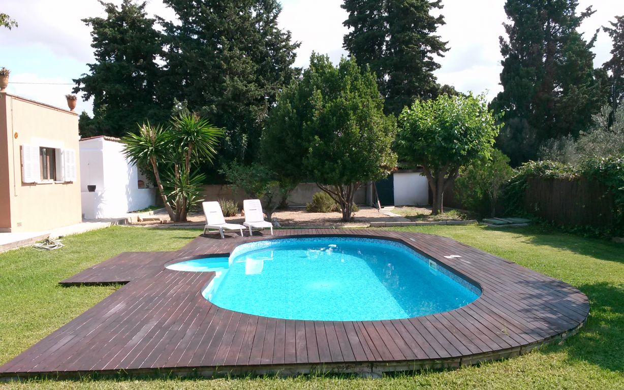 Esta maravillosa casa está situada en Son Sardina, a tan solo cinco minutos de Palma.. Está construida sobre un terreno de 1.760 metros cuadrados, rodeada de un precioso jardín mediterráneo con piscina. Tiene dos plantas y 343 metros cuadrados construidos en total. La planta baja consta de: Cocina-comedor amueblada y totalmente equipada, salón, una habitación, un baño, despensa, una gran sala ideal para construir un gimnasio, apartamento invitados, estudio, etc..., terraza con un porche, jardín, piscina, barbacoa, horno de leña. Planta primera: cuatro habitaciones una de ellas con baño en suite, vestidor y balcón, un baño completo, terraza.. . Dispone de calefacción en toda la casa, aire acondicionado en salón y dormitorio principal, carpintería exterior de madera, suelos de gres, pozo propio de agua, placas solares y caldera de gas propano.. Muy buena comunicación a la ciudad en metro, tren o bus..