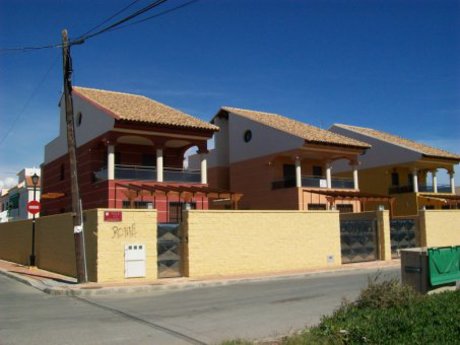 Nº 088.-Chalet de 300 m2 en parcela de 400 m2 en Puerto de Mazarron.. . Sótano de 97 m2. Útiles de 76 m2.. Luego una vivienda de 180 m2 que consta de planta baja, 1º piso y buhardilla.. La planta baja tiene una terraza de 20 m2. Salón comedor, cocina con lavadero, baño, y dormitorio principal de 20 m2. Con un vestíbulo y pasillo.. En planta 1º tenemos una terraza anterior de 9 m2 y una posterior de 8 m2. 3 dormitorios todos exteriores, un baño.. En planta torreón tenemos una buhardilla de 30 m2 con una terraza de 24 m2.. . MEMORIA DE CALIDADES (400 m2 Parcela) (300 m2 Obra). . Cubierta: Tejado y terraza visitable.. Fachada: Revestimiento de mortero monocapa. Balcón con antepecho de ladrillo y terminación en acero inoxidable. Barandas exteriores en acero inoxidable. Aislamiento poliuretano proyectado 4 cmts.. Carpintería Exterior: Madera de Iroko, persianas de aluminio del mismo color y mosquiteras. Rejas en planta baja en acero inoxidable.. Cristalería Exterior: Cámara de aire climalit o similar.. Aislamiento térmico en toda la fachada en poliuretano proyectado. Cristalería Interior: Vídrios de luna incolora de 4 mm.. Carpintería Interior:. -Puertas de Paso: Macizas de aglomerado serie construcción en Roble liso (con la malla al través). Puertas de cocina y salón-comedor con vidrieras con seis cristales.. Herrajes y manivelas en acero inoxidable. Tapajuntas macizos.. -Puerta de Entrada: De madera de Iroko. -Buhardilla con techo de madera de roble torneada.. -Barandilla de madera de iroko en todos sus tramos de la vivienda.. -Armarios empotrados en los 4 dormitorios en roble, interior en melanina de roble. Solados: Pavimentos de Gres APV 30x60 Porc. Habitat Rosa (45 €/m2) en toda la vivienda, a excepción del sótano.. Alicatados: . Cocina: CPA 32x59 Blanco Liso Rectificado (36 €/m2). Baño P.Baja: CPA 32x59 Koala Beige Rect. + Koala Cuero Rect.. Baño 1ª.Planta: GRE 30x30 Manhattan Azul + New Cork Azul.. Aseo buhardilla: GRE 30x30 Venecia Marino + Venecia Blanco.. . Escaleras: Granito nacional. Vierteaguas: Granito nacional. Fontanería:. Instalación en cobre; se incluyen instalación de lavadora y lavavajillas.. Sanitarios:. -En todos los Baños: Modelo Senso de Dama. -Bañera de Hidromasaje en baño de la primera planta. Grifería:. Monomando modelo Monojet de Roca. Calentador:. Eléctrico de 75 litros. Pintura:. Lisa en color beig.. Lacado en carpintería de madera. . Electricidad:. Modelo Arco de Niessen (Gris plata con marco negro) con piloto luminoso.. Puntos de TV y