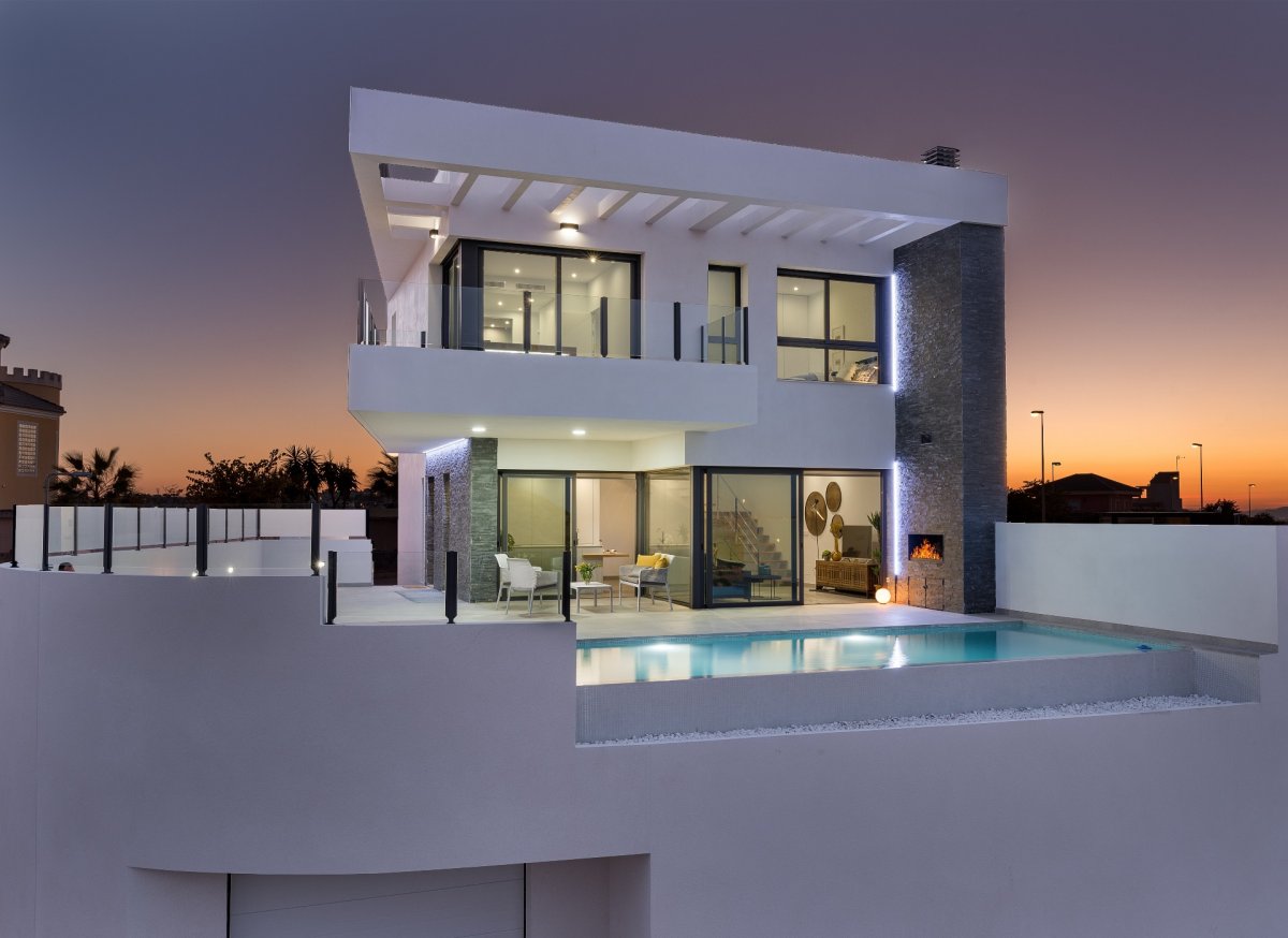Chalet en Rojales zona Ciudad Quesada, 264 m. de superficie, 275 m. superficie parcela, 5 m. de la playa (KMS), 3 habitaciones dobles, 3 baños, propiedad en obra nueva, cocina equipada, carpinteria interior de aluminio, orientación suroeste.VENTA DESDE 395.000€ a 474.000€ segun modelo vivienda.. Extras: aire acond. central, armarios empotrados, barbacoa, garaje doble, lavandería , luminoso, mirador, ojos de buey, piscina propia 10x3 , puerta blindada, sótano , solárium, terraza, trastero, videoportero, garaje incluído., electrod. Siemens, cortinas motorizadas, vestidores, luminaria.. cerca a esta propiedad tienes, árboles, centros médicos, costa, golf, urbanización, vistas al mar, vistas despejadas, zonas infantiles..