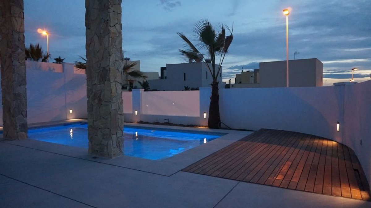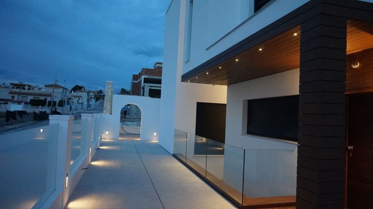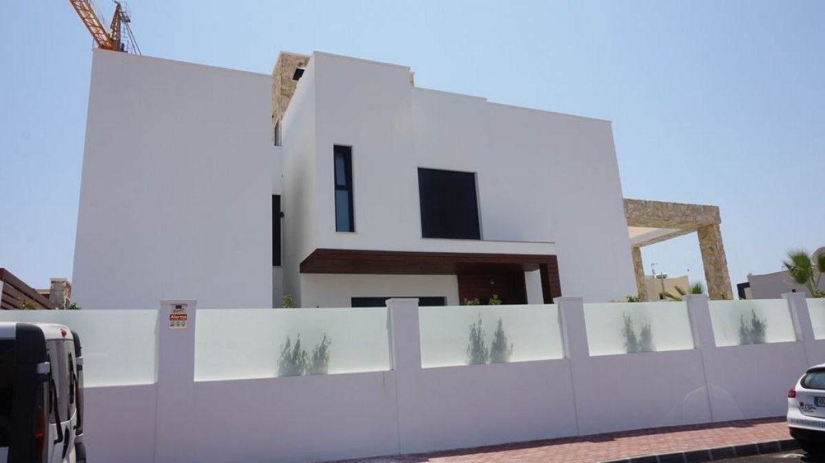 Villa de Lujo desde 595000€ hasta 599000€ en Torrevieja zona Torre del moro, 200 m. de superficie, 400 m. superficie parcela, 36 m2 de terraza (m2), 300 m. de la playa (mts), 4 habitaciones dobles, 4 baños, propiedad nueva, cocina sólo muebles, carpinteria interior de lacado blanco, orientación sur, suelo de cerámico, carpintería exterior de aluminio / climalit.. Extras: armarios empotrados, luminoso, mirador, ojos de buey, pérgola, piscina propia , preinst. aacc, puerta blindada, puertas automático, solárium, terraza, videoportero, garaje incluído.. cerca a esta propiedad tienes, autobuses, centros médicos, colegios, costa, hospitales, urbanización, vistas al mar, vistas despejadas, zonas infantiles.